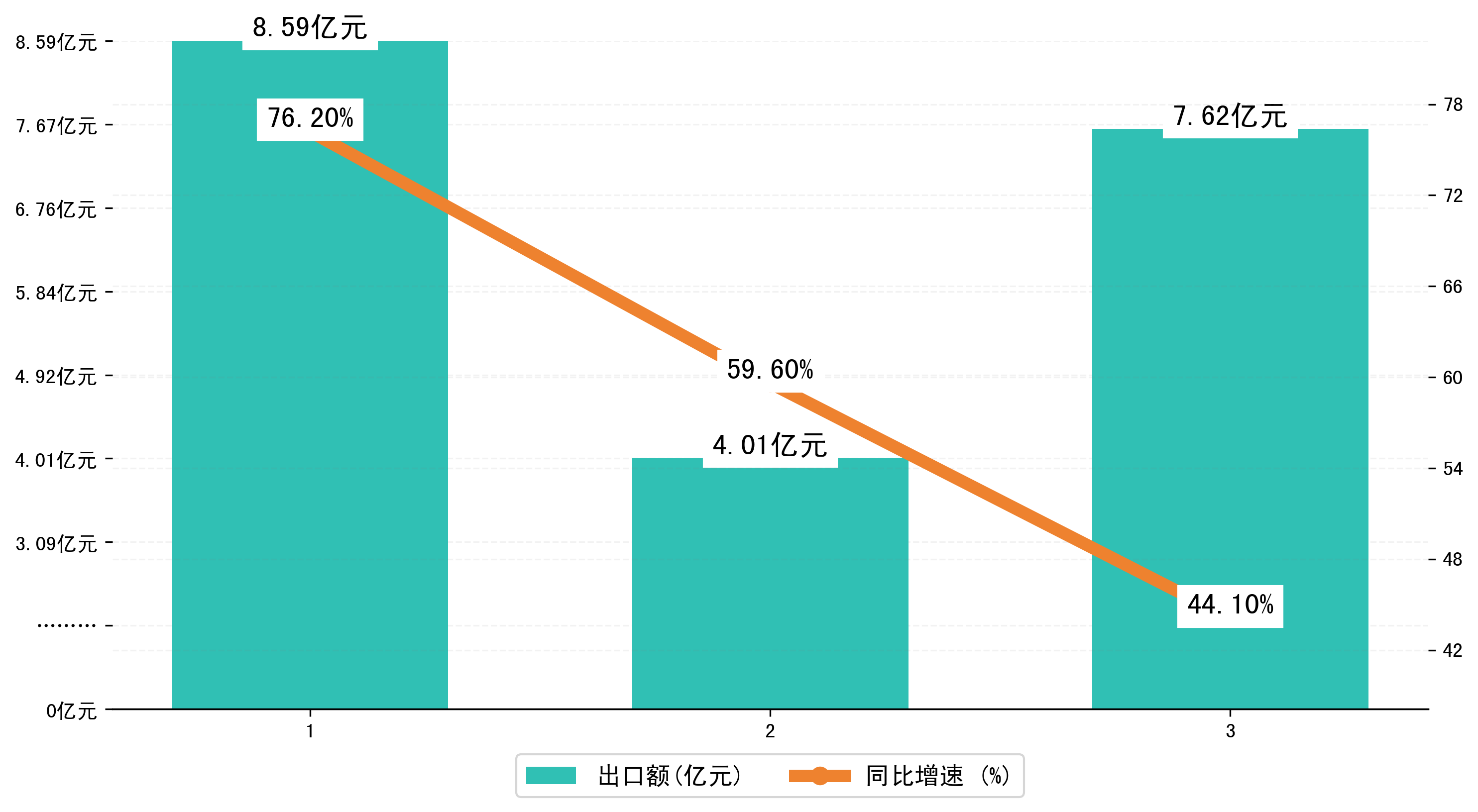 以人民币计,2025年3月常德市出口额为7,6210.6062万元,相比上月增加了3,6128.0506万元;相比上年同期增加了1,4842.5243万元,同比增加了44.10%。