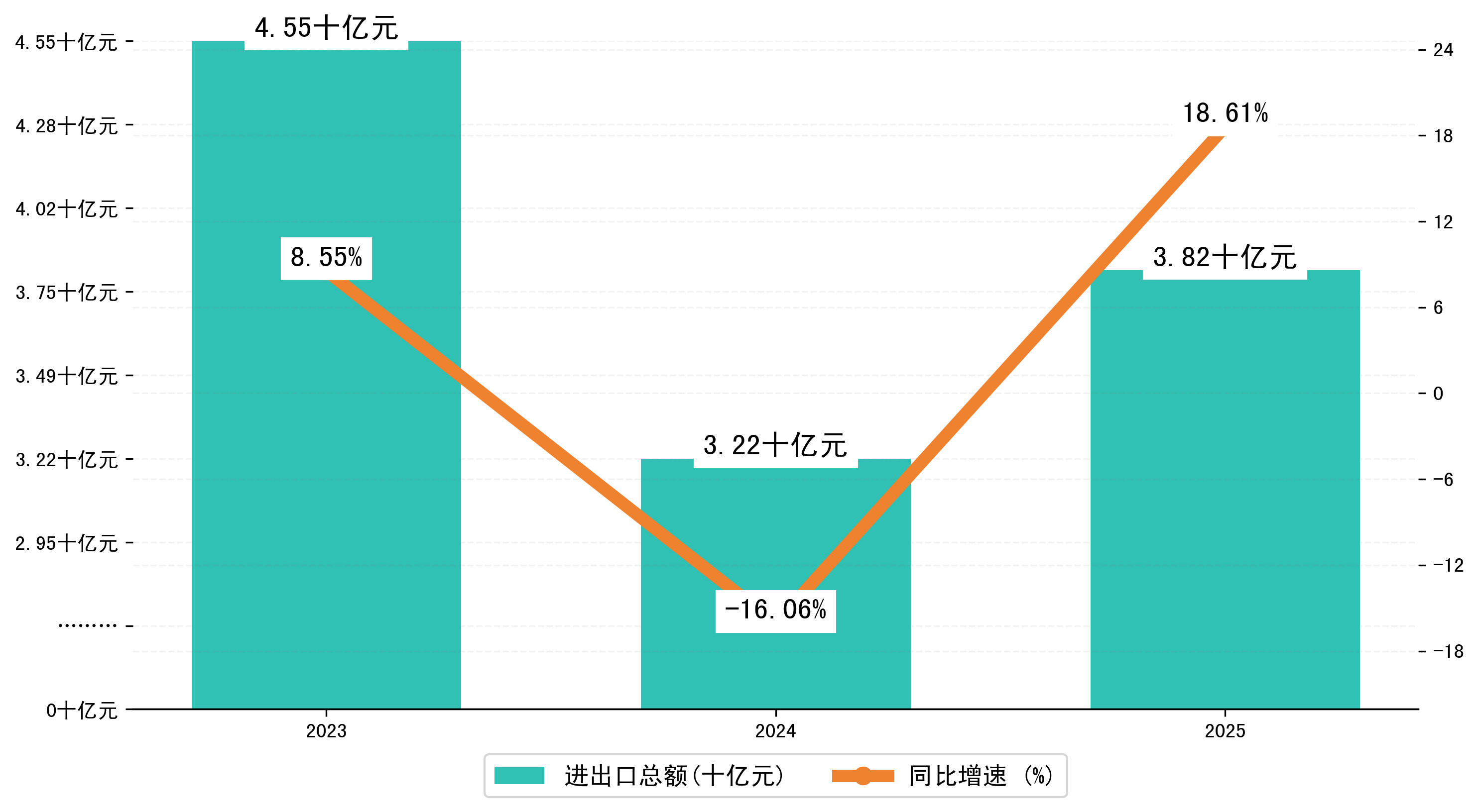 以人民币计,2025年1-3月常德市进出口总额为38,1877.2383万元,相比上年同期增加了5,9911.1906万元,同比增加了18.70%。