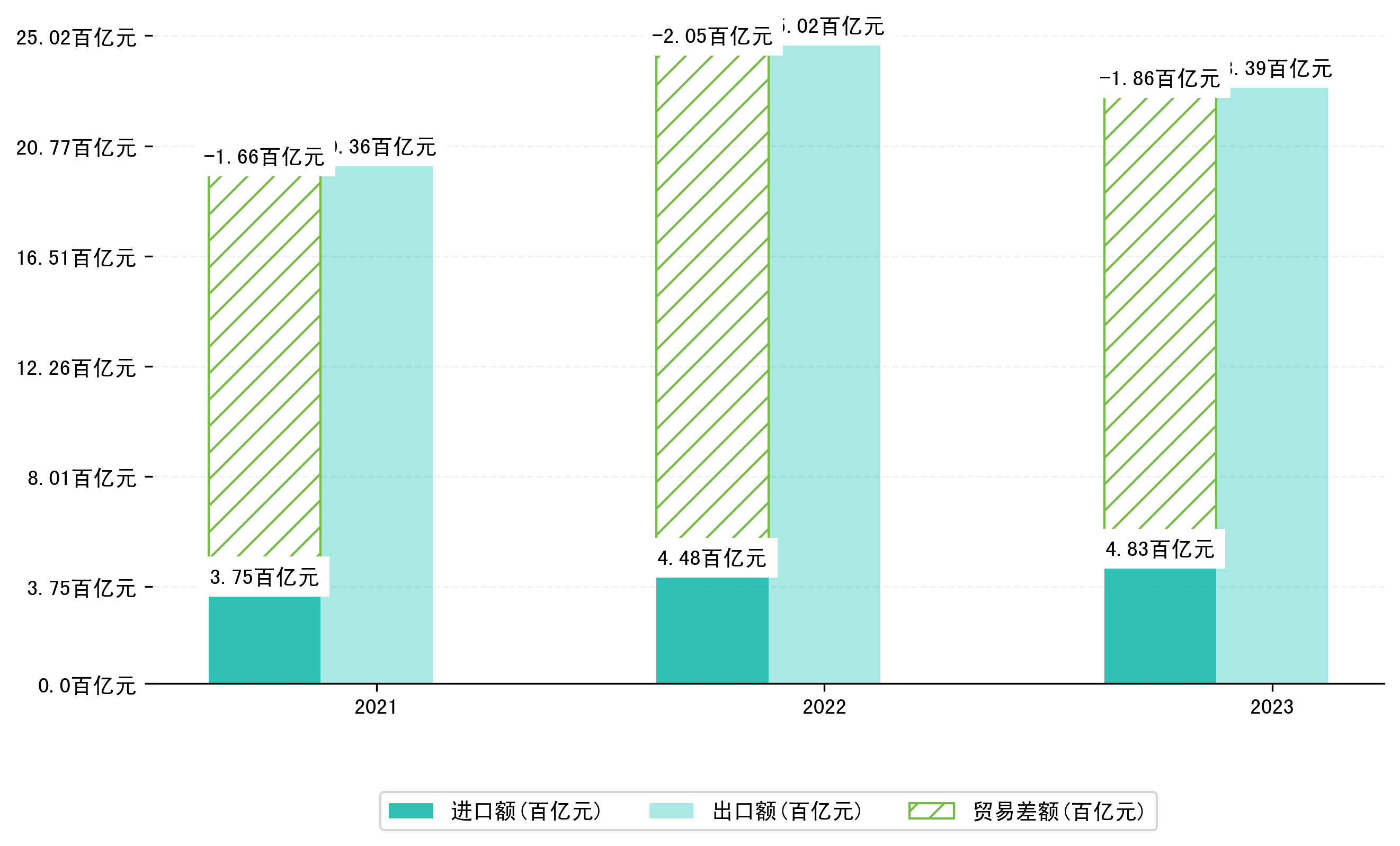 以美元计,2023年1-12月温州市进口额为68,5556.9924万美元,相比上年同期增加了1,6548.5759万美元,同比增加3.70%。