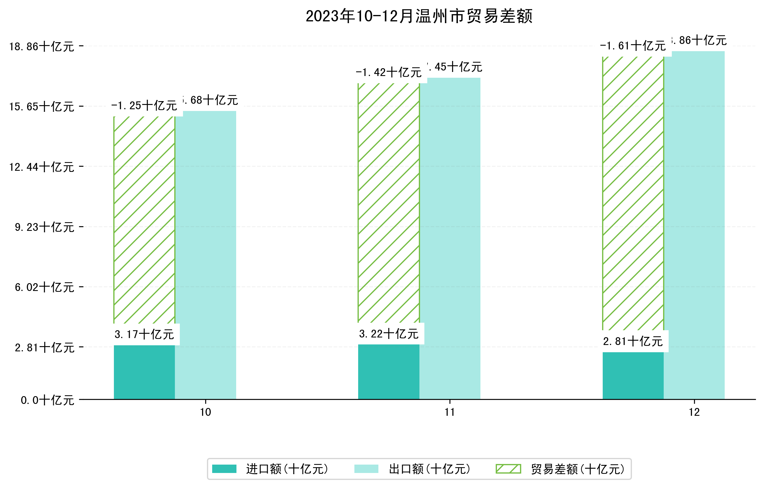 以人民币计,2023年12月温州市贸易差额为160,5642,5519万元(贸易顺差),相比上月增加了18,2029,1078万元,即2,5698,7815万美元;相比上年同期增加了26,6230,1373万元,同比增加19.88%。