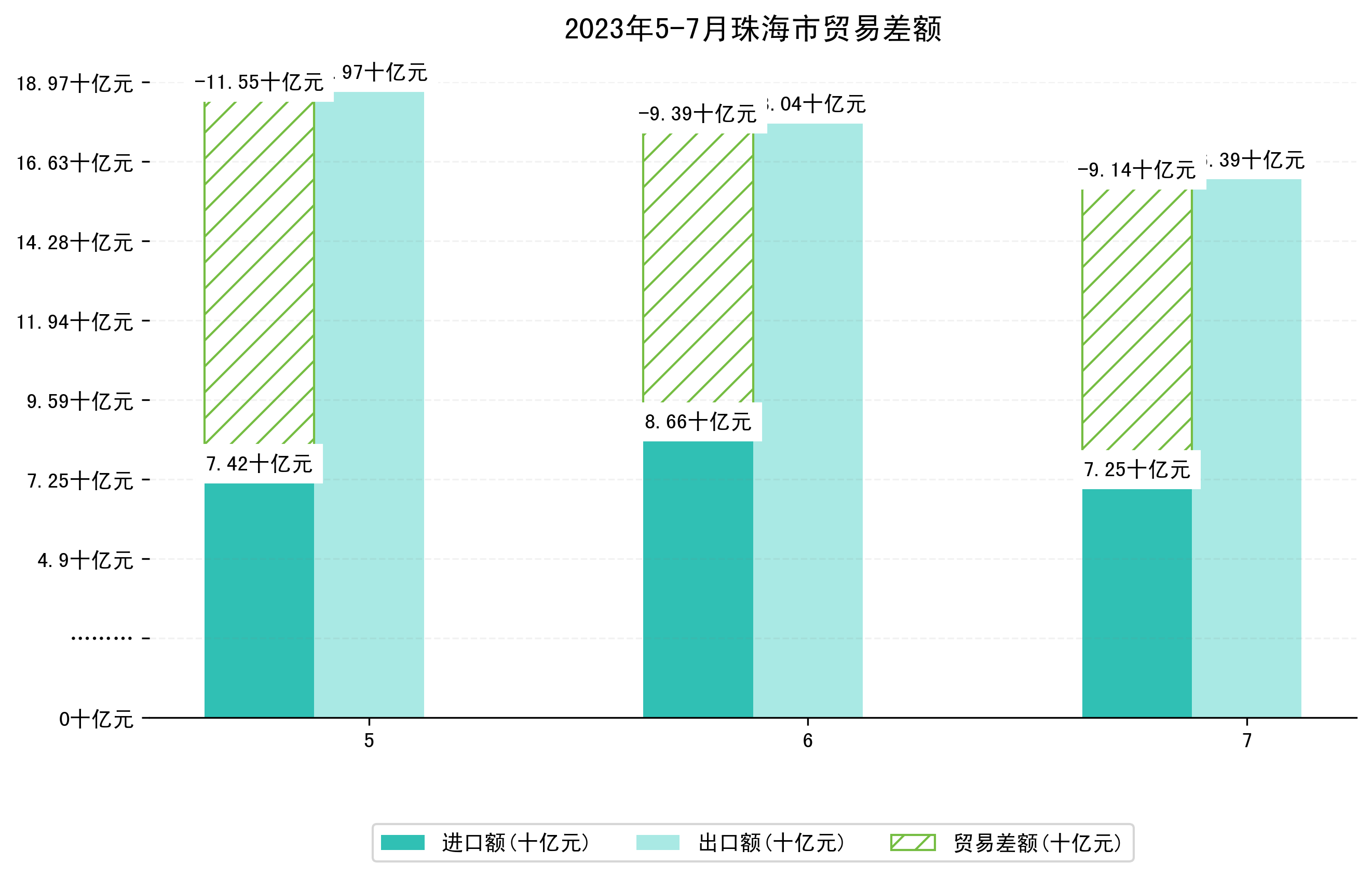 2023年7月珠海市进出口总额及进出口差额统计分析