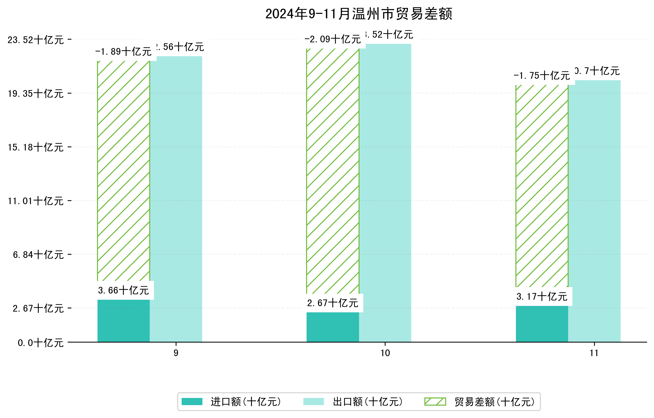 一、2024年11月温州市单月出口总额及进出口差额统计分析