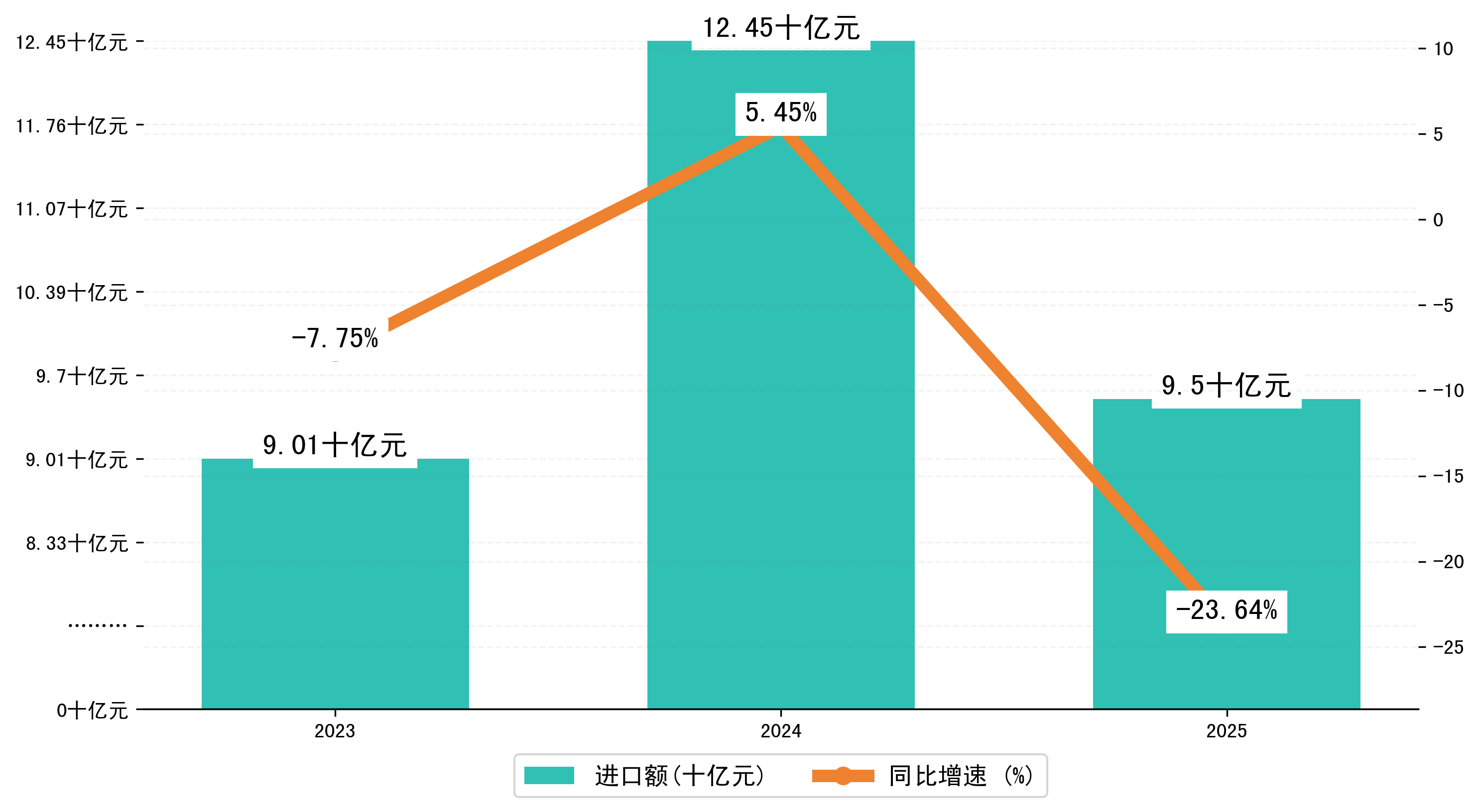 以人民币计,2025年1-3月温州市进口额为95,0366.8705万元,相比上年同期减少了29,4217.6868万元,同比减少了-23.40%。