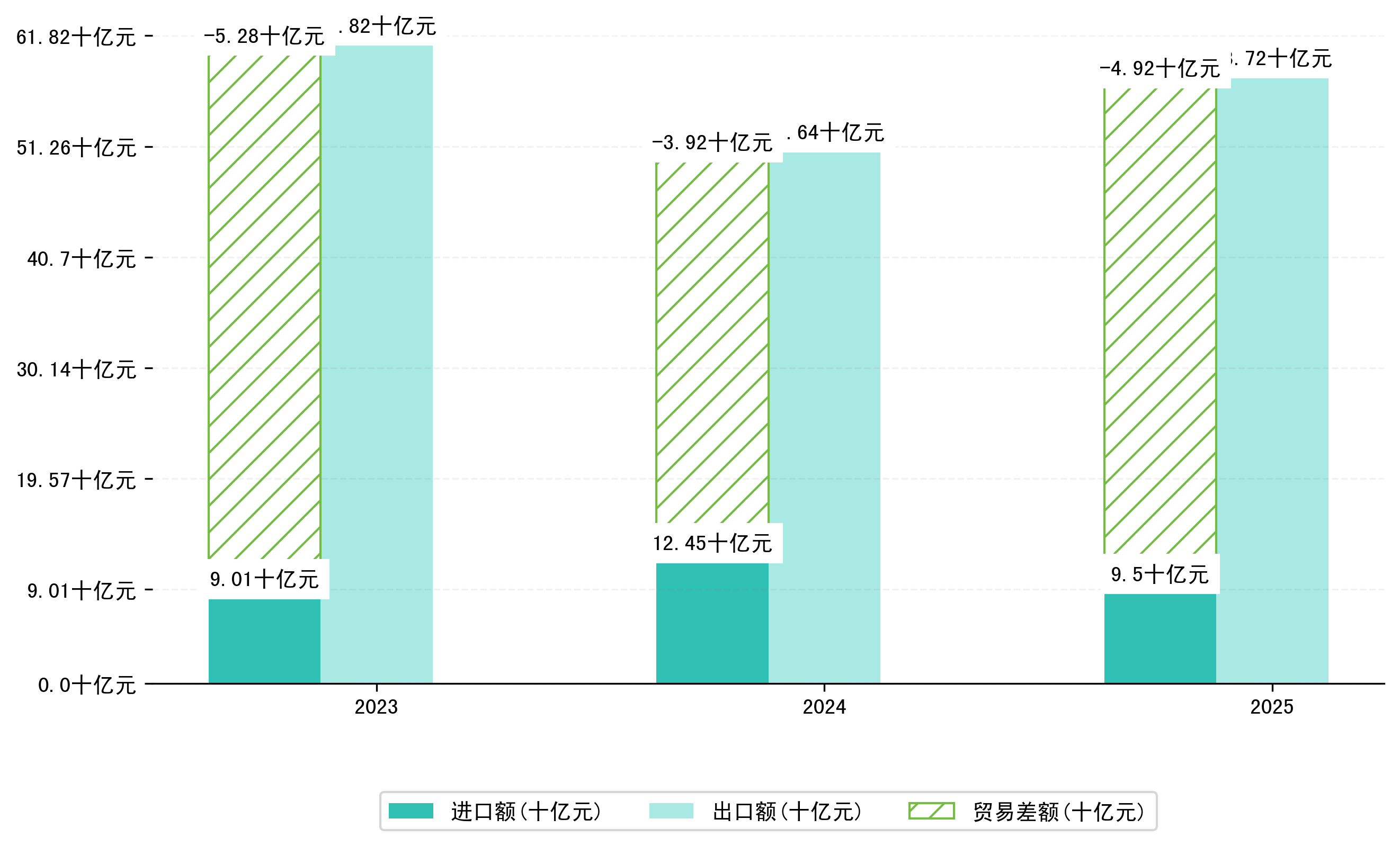 以美元计,2025年1-3月温州市贸易差额为68,4910,0017万美元(贸易顺差),相比上年同期增加了13,3431,2397万美元,同比增加24.2%。