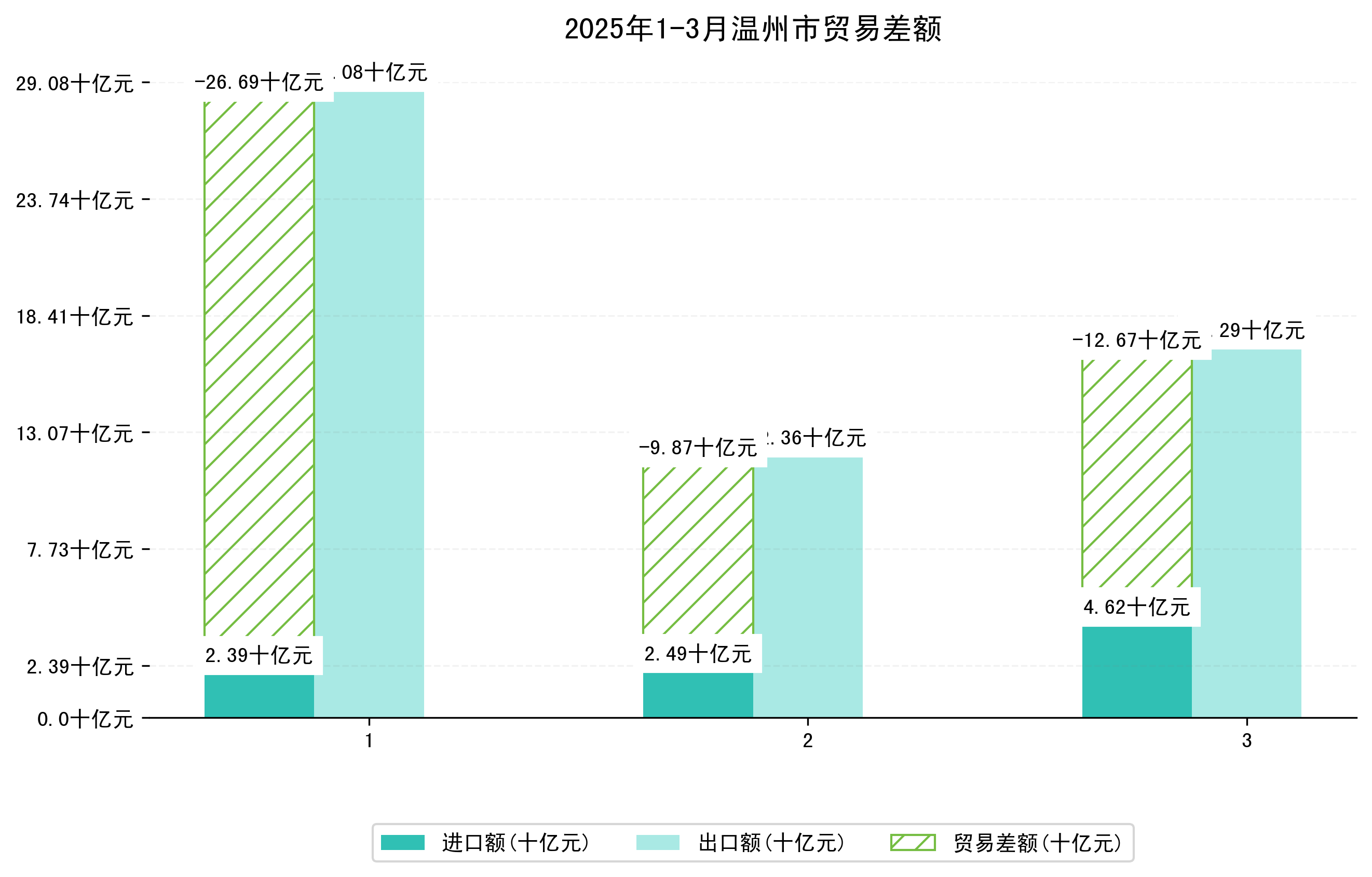 一、2025年3月温州市单月出口总额及进出口差额统计分析