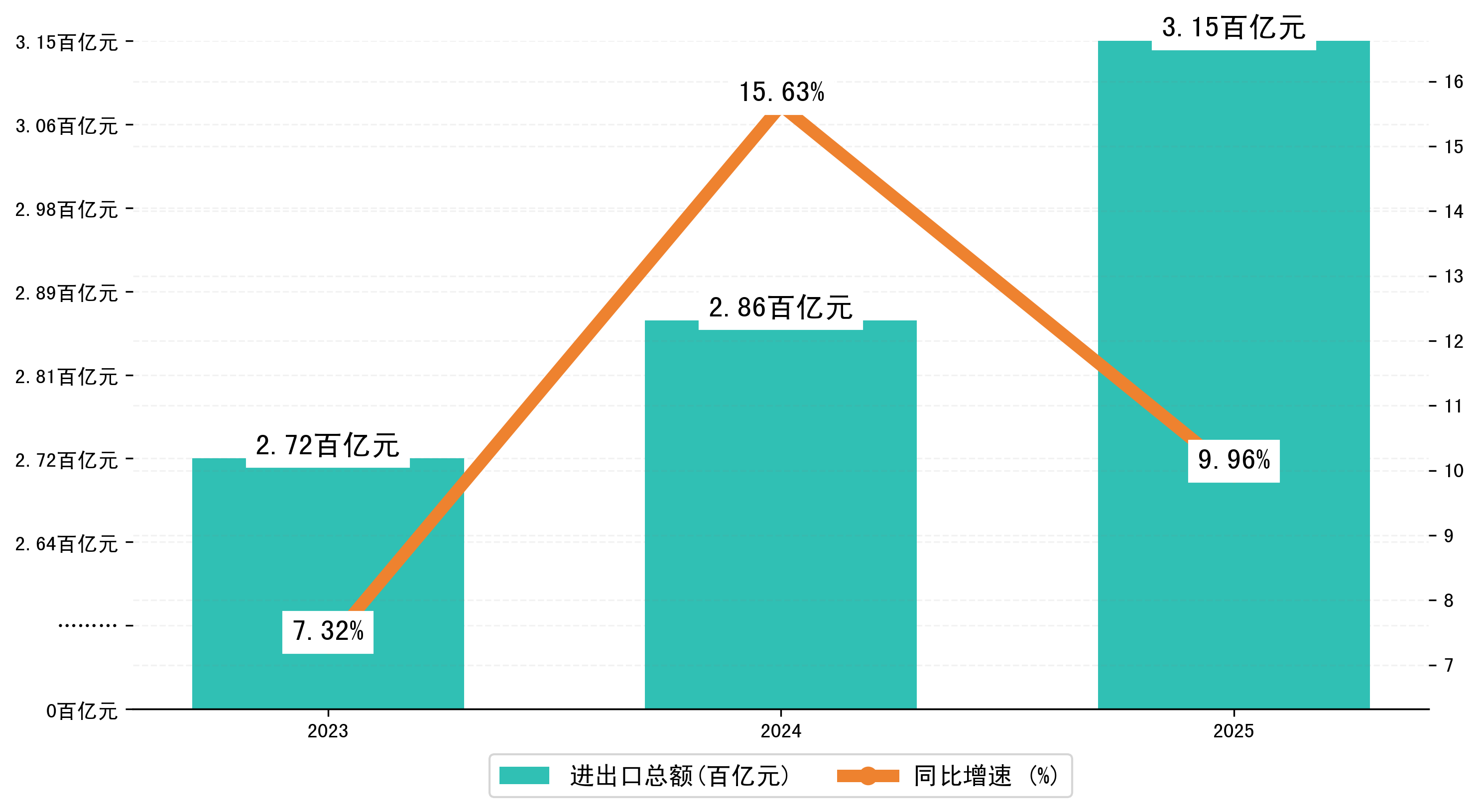 以人民币计,2025年1月温州市进出口总额为314,7390.1926万元,相比上月增加了83,8664.4589万元;相比上年同期增加了28,5192.7362万元,同比增加了10.10%。