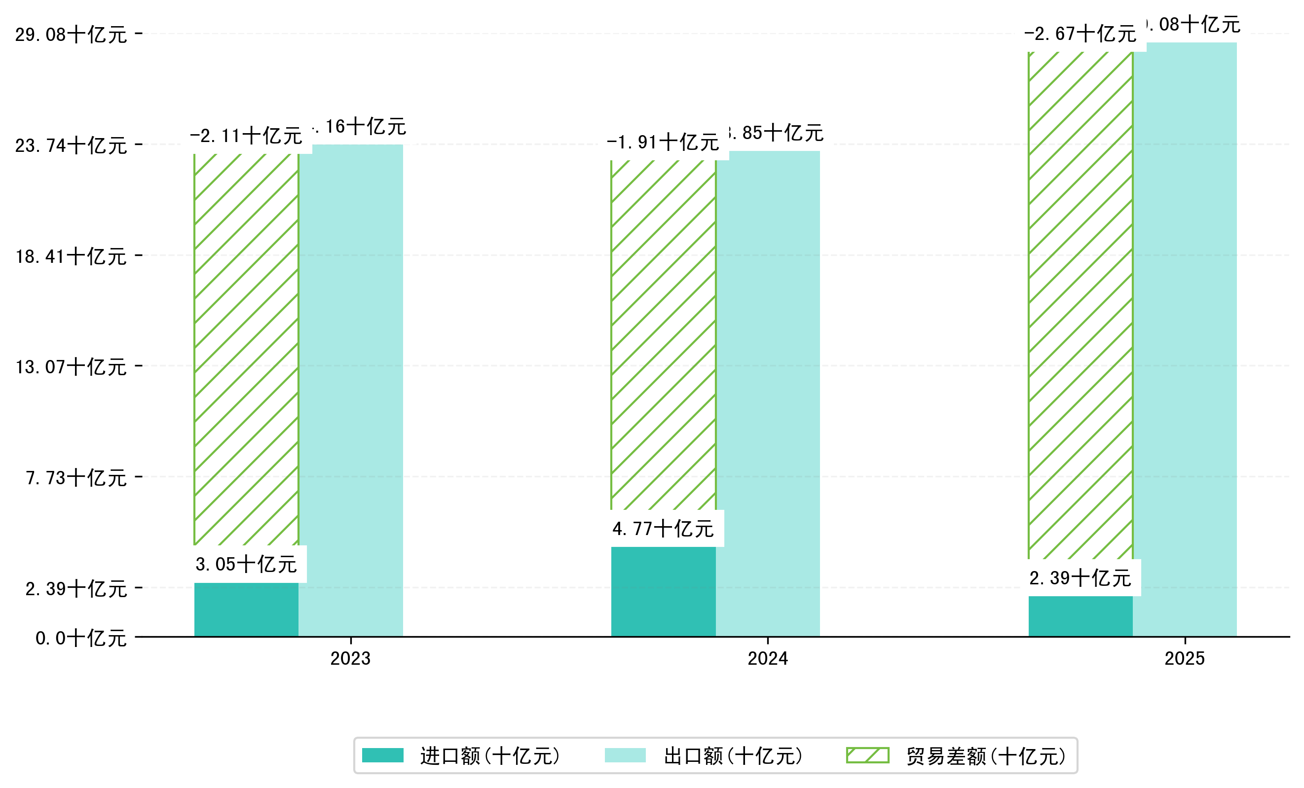 以人民币计,2025年1月温州市贸易差额为266,8610,9942万元(贸易顺差),相比上月增加了82,4588,6377万元,即11,4196,2662万美元;相比上年同期增加了76,0027,8294万元,同比增加39.82%。