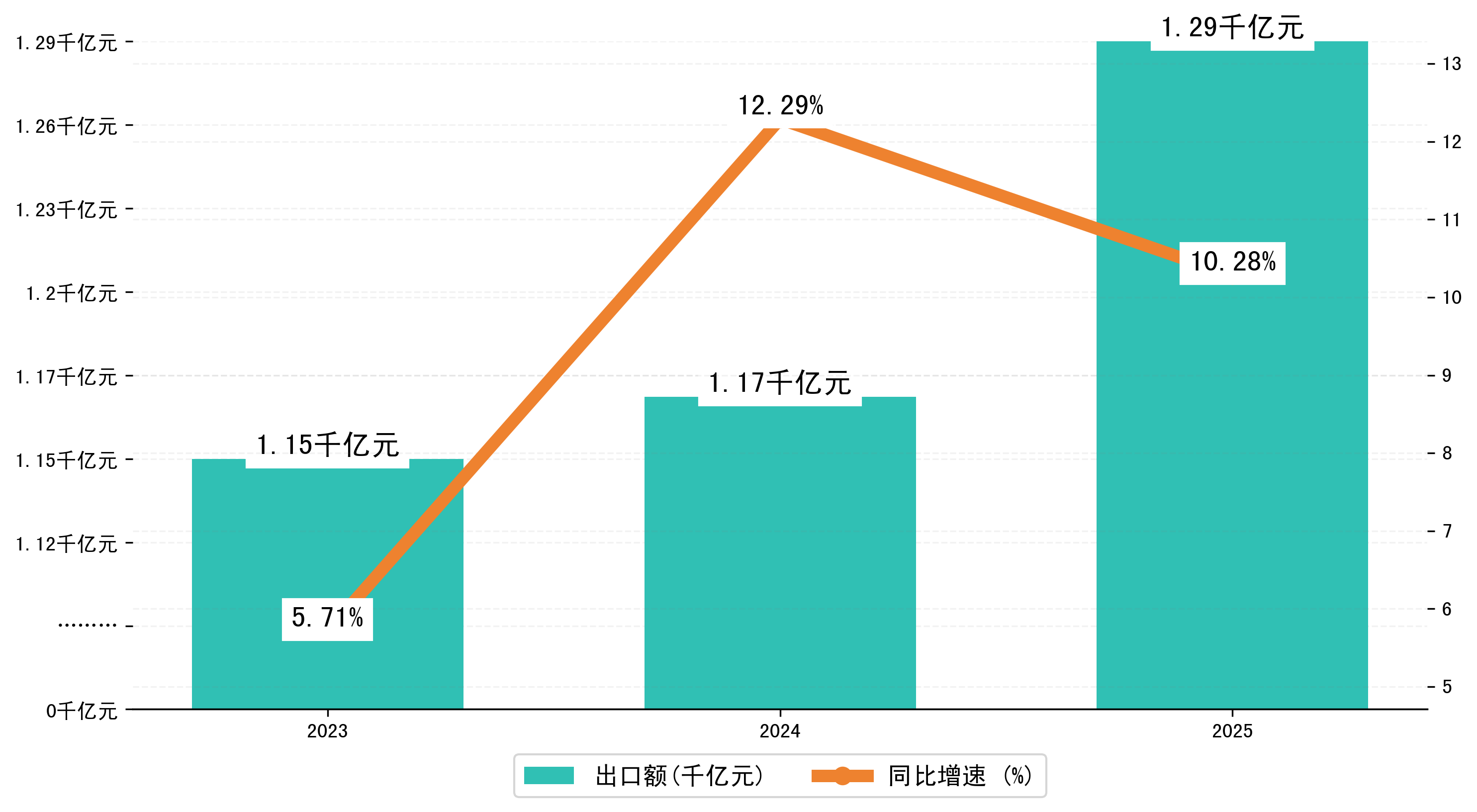 以人民币计,2025年1-6月温州市出口额为1287,4140.1817万元,相比上年同期增加了120,0076.0734万元,同比增加了10.60%。