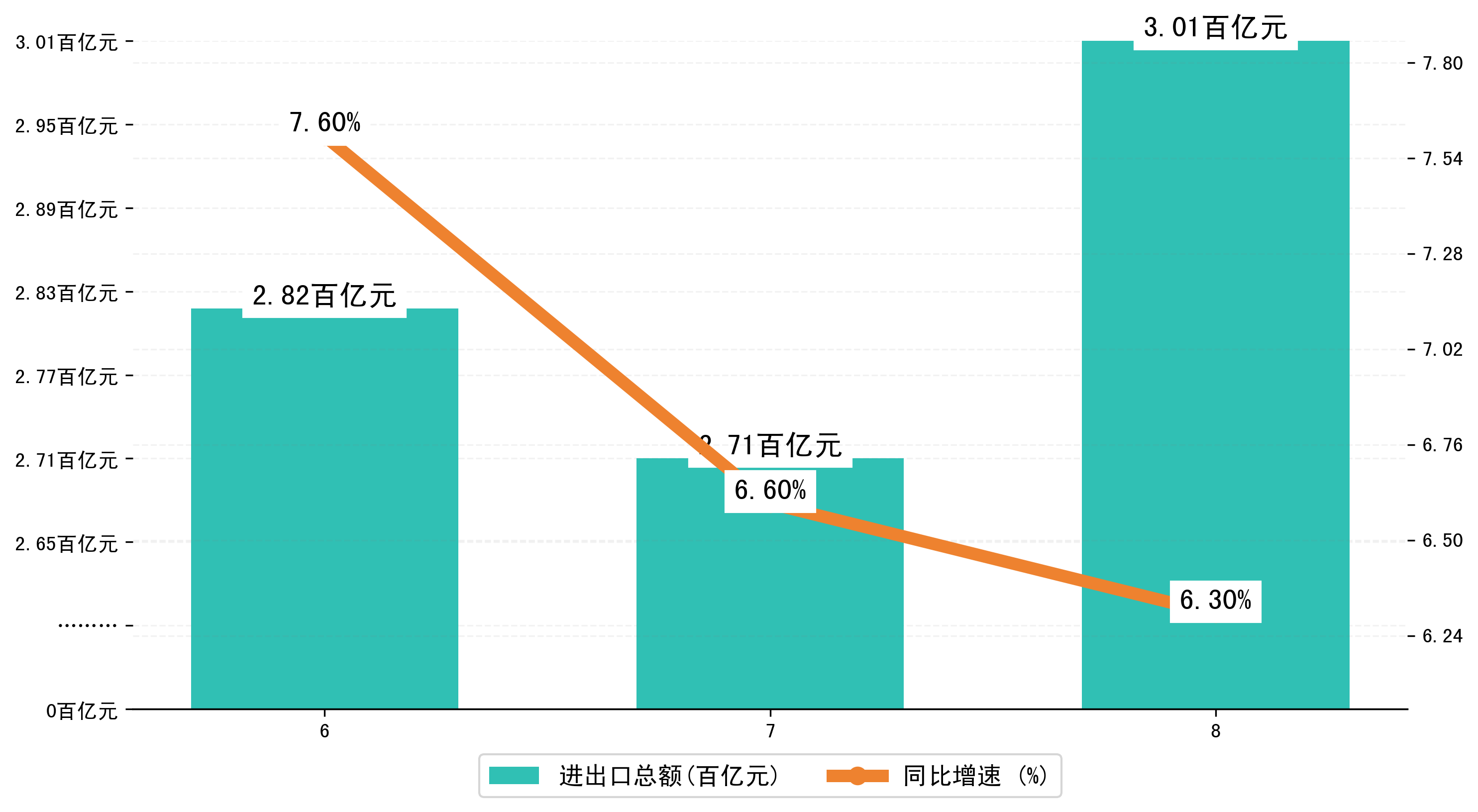 (图一:2025年6-8月温州市进出口总额)