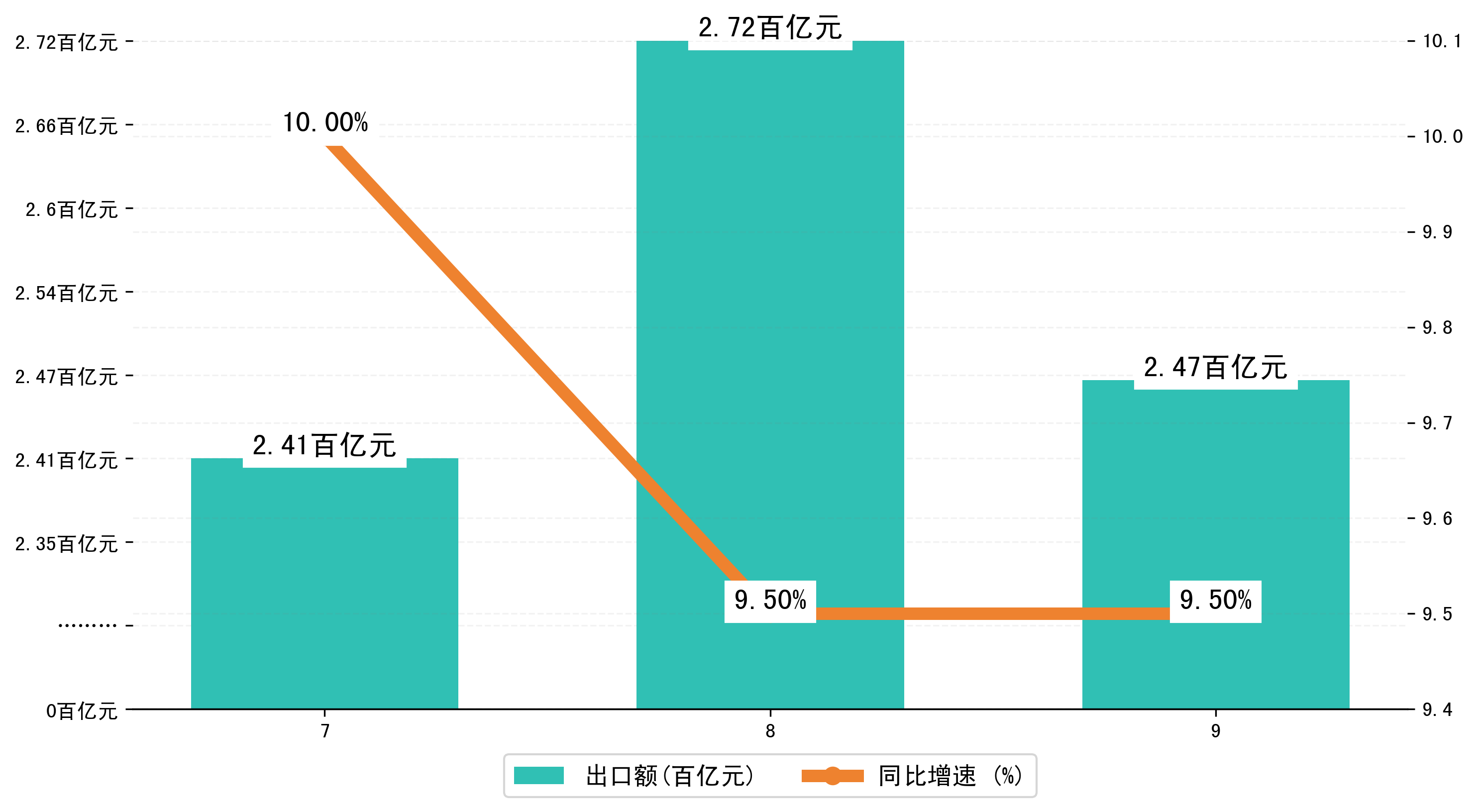 一、2025年9月温州市单月出口总额及进出口差额统计分析