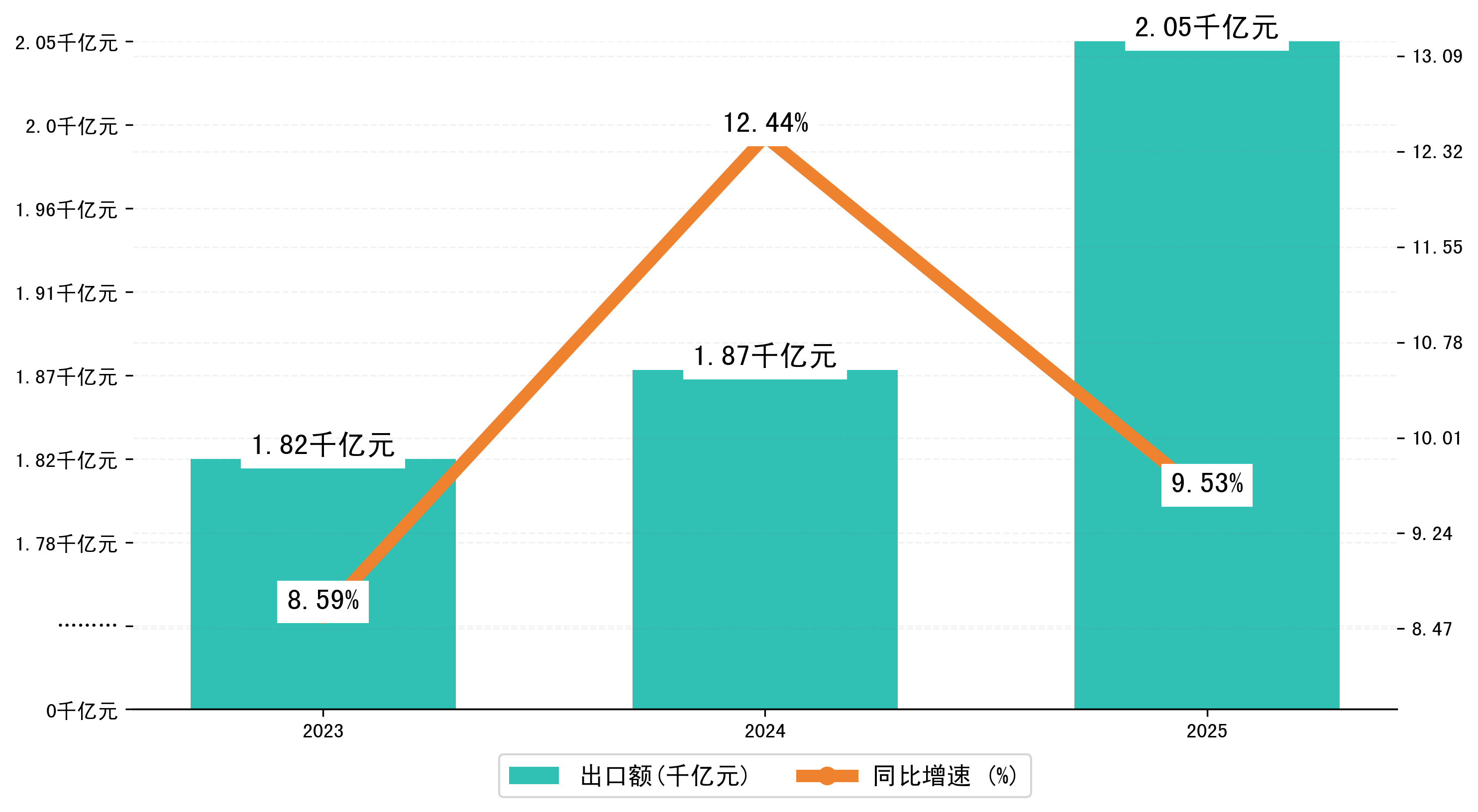 以美元计,2025年1-9月温州市出口额为285,3578.1201万美元,相比上年同期增加了22,5069.3576万美元,同比增加8.50%。
