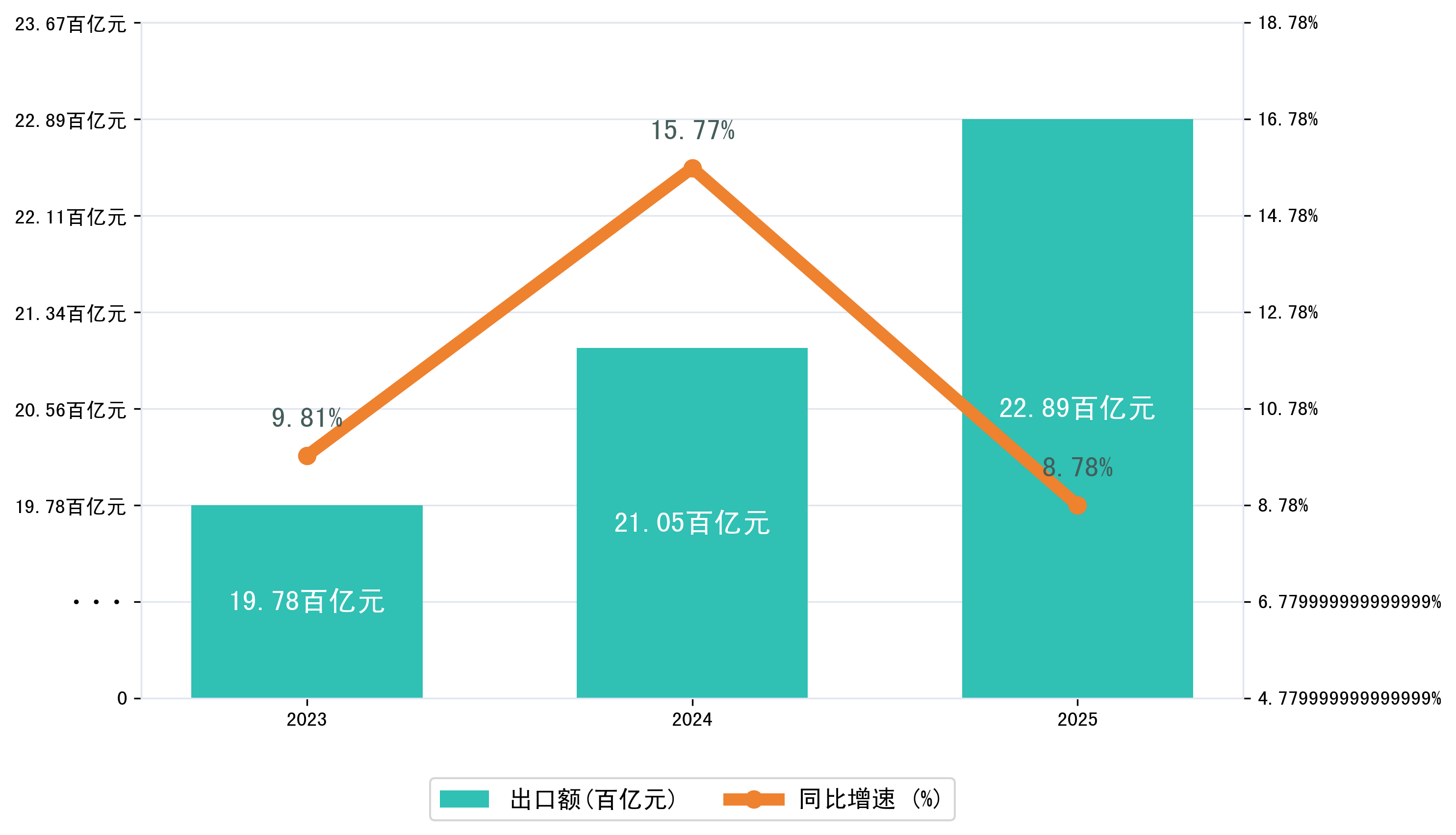 以人民币计,2025年1-10月温州市出口额为2289,4028.5717万元,相比上年同期增加了184,8699.397万元,同比增加了8.80%。