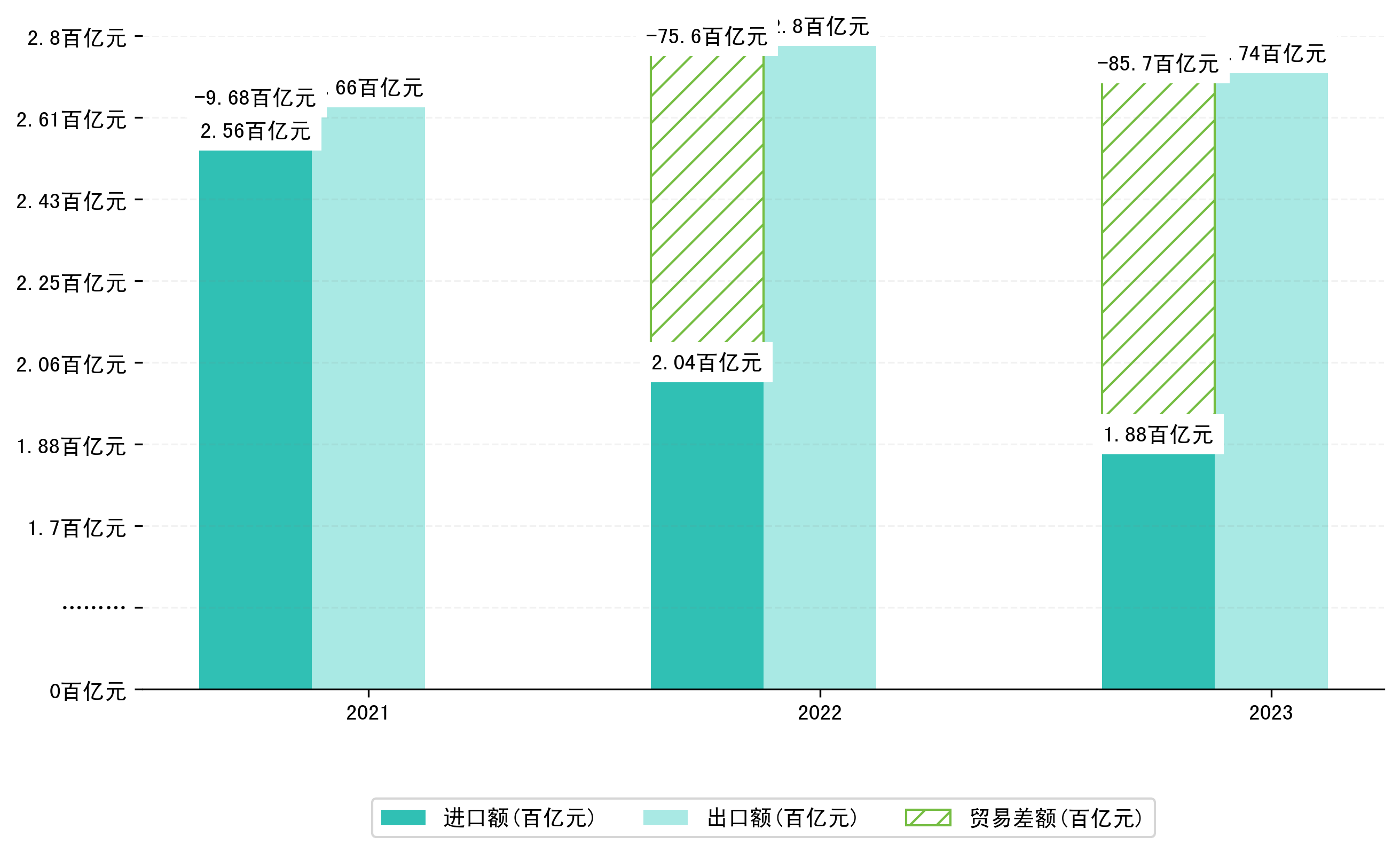 (图八:2021-2023年1-2月武汉市累计贸易差额)