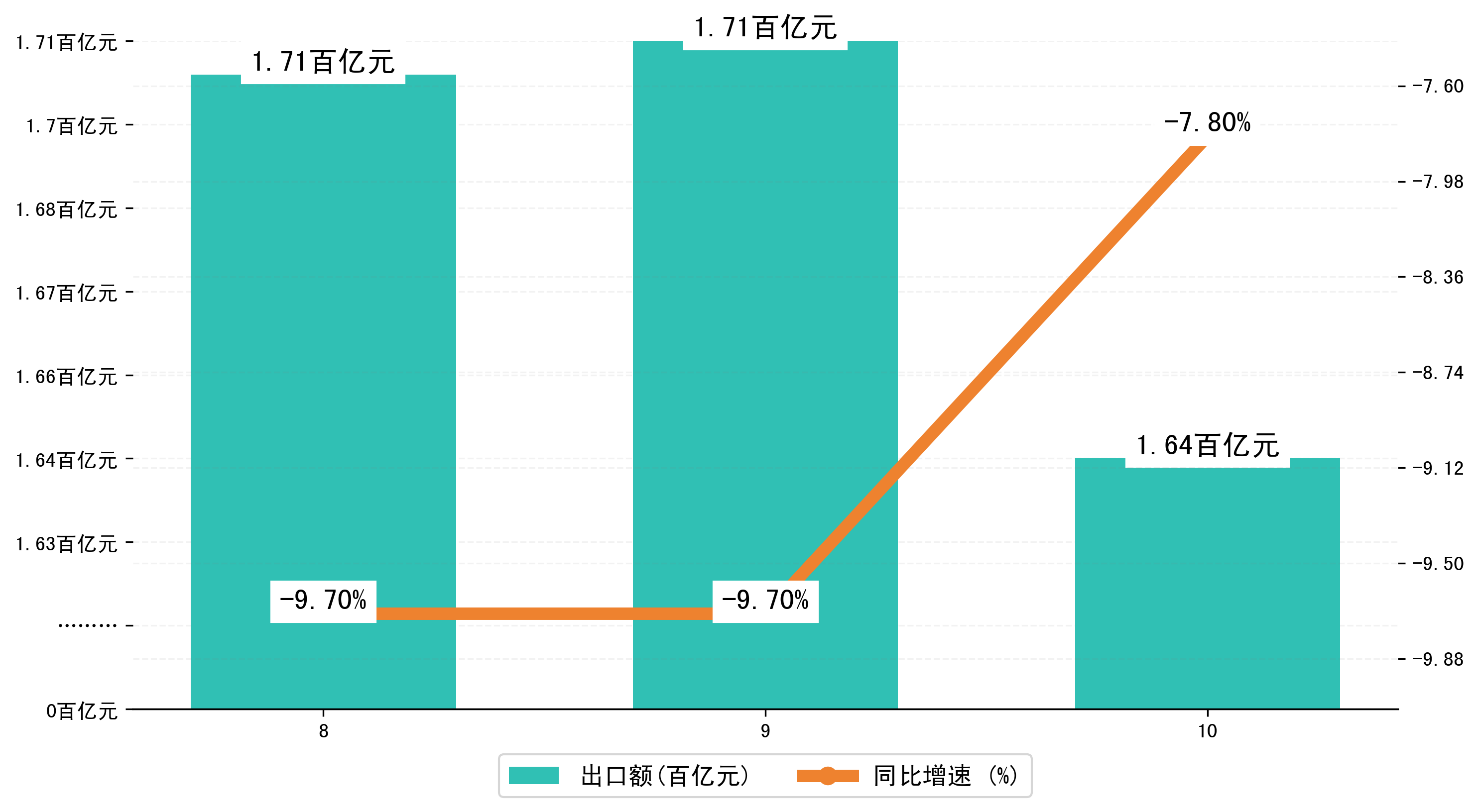 (图二:2023年8-10月武汉市出口额)