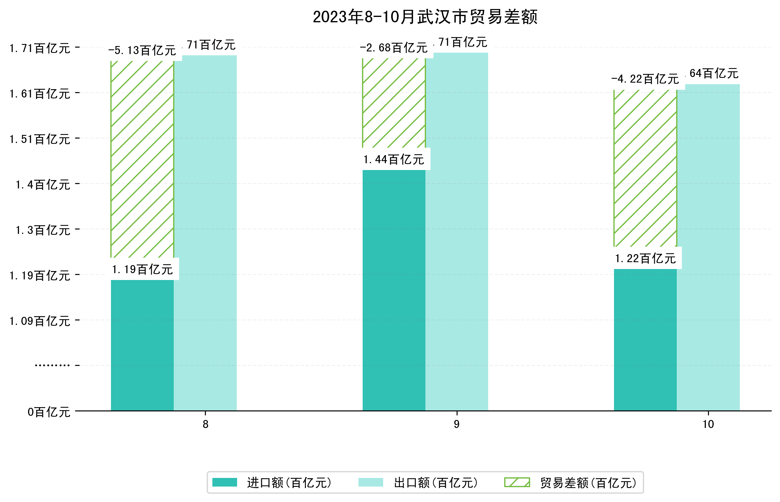 (图四:2023年8-10月武汉市贸易差额)