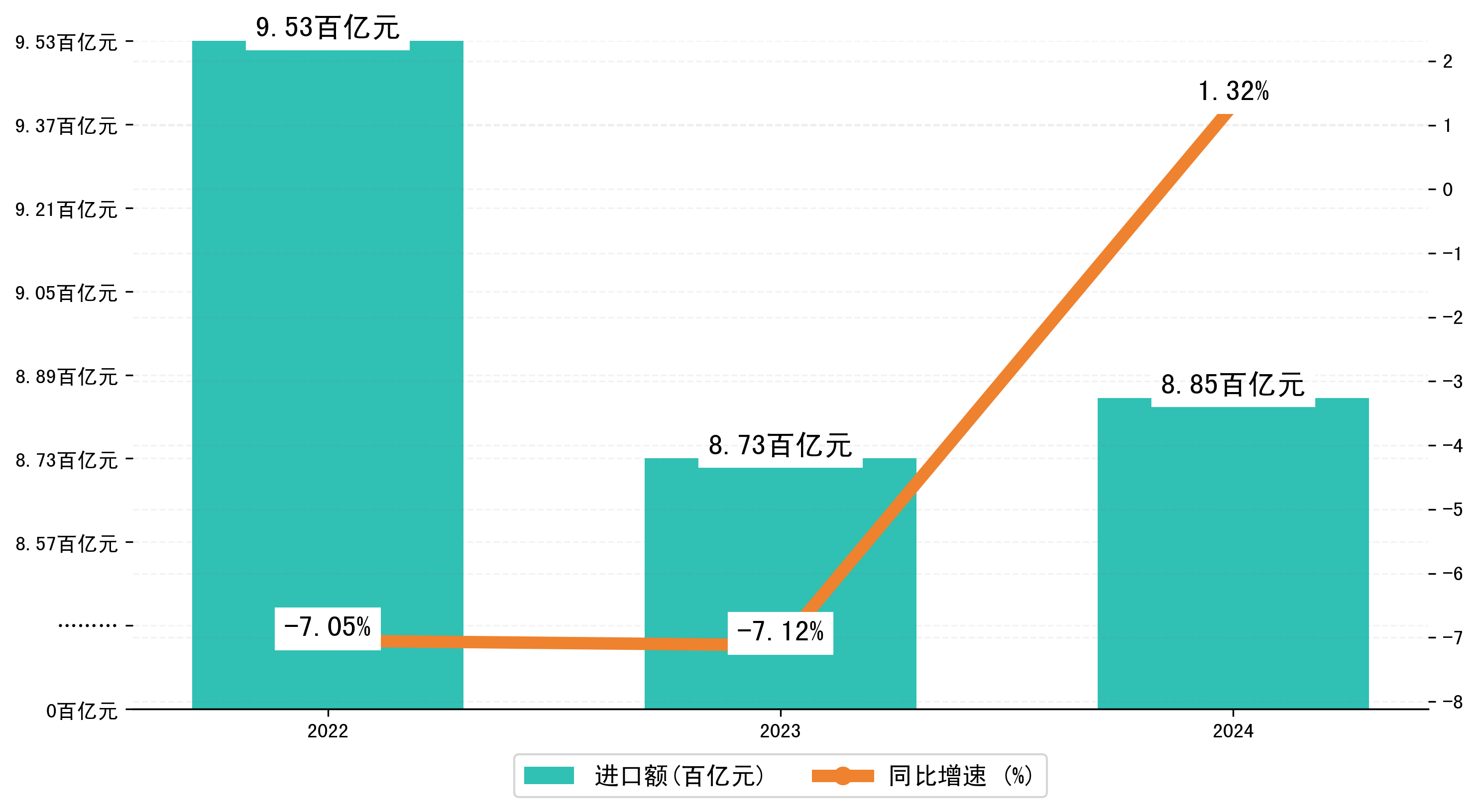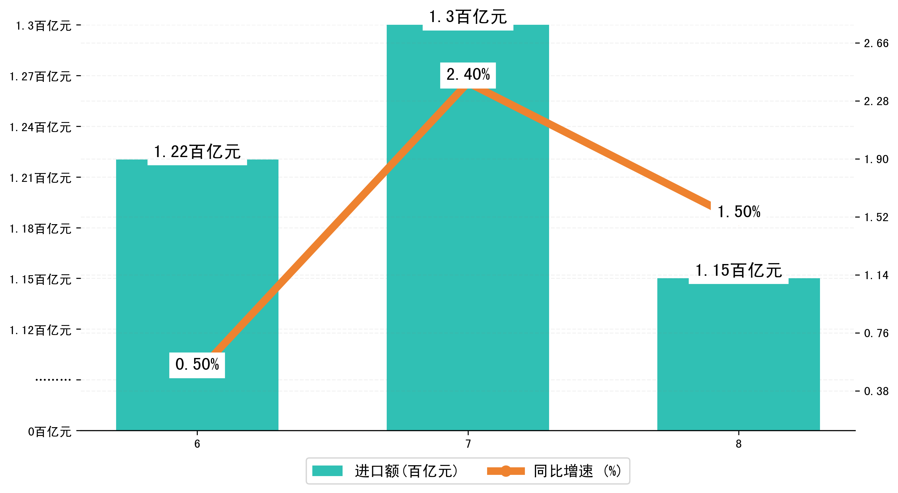 以人民币计,2024年1-8月武汉市进口额为884,7642.9596万元,相比上年同期增加了11,5106.1286万元,同比增加了1.50%。
