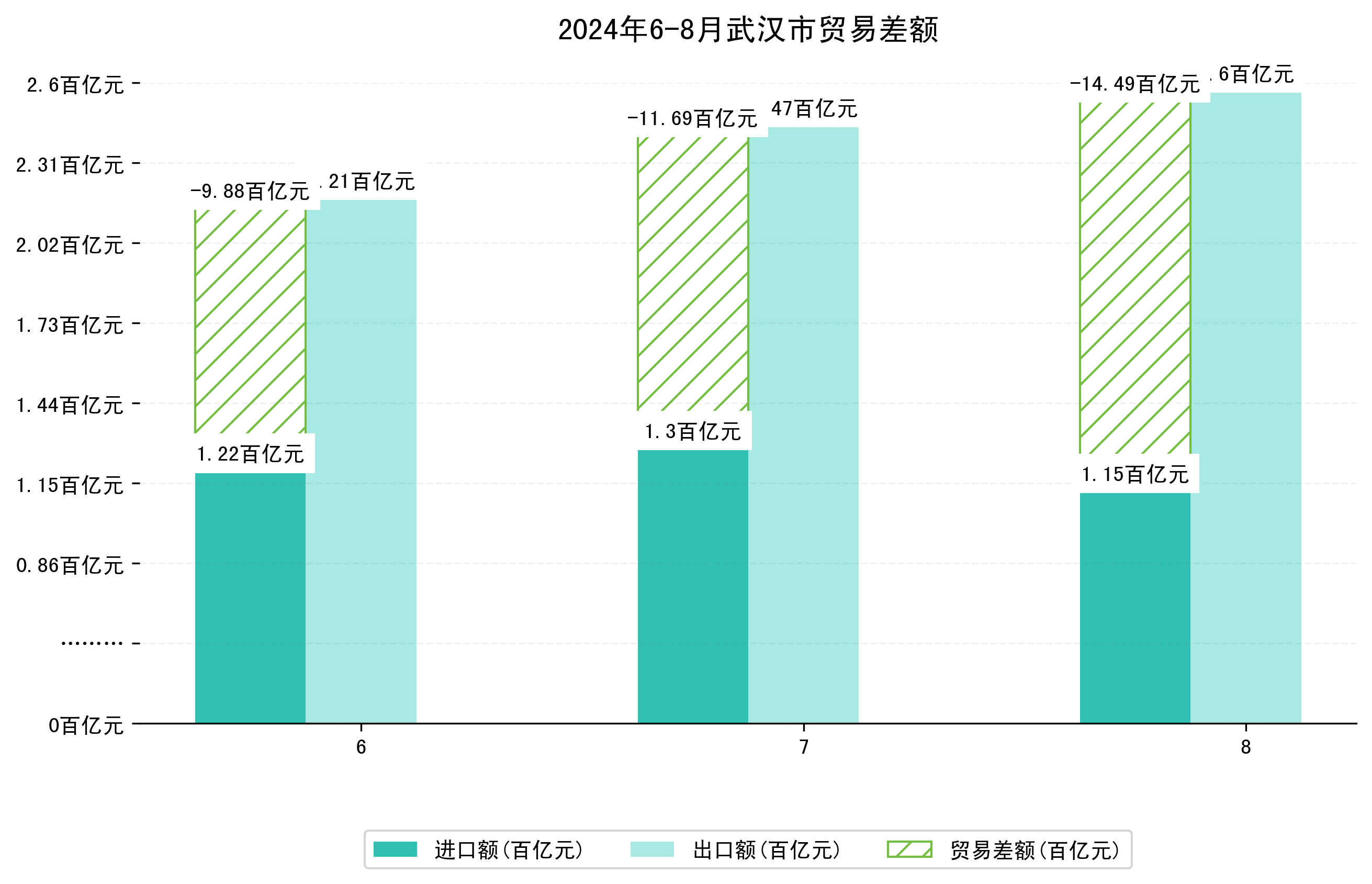 2024年8月武汉市进出口总额及进出口差额统计分析