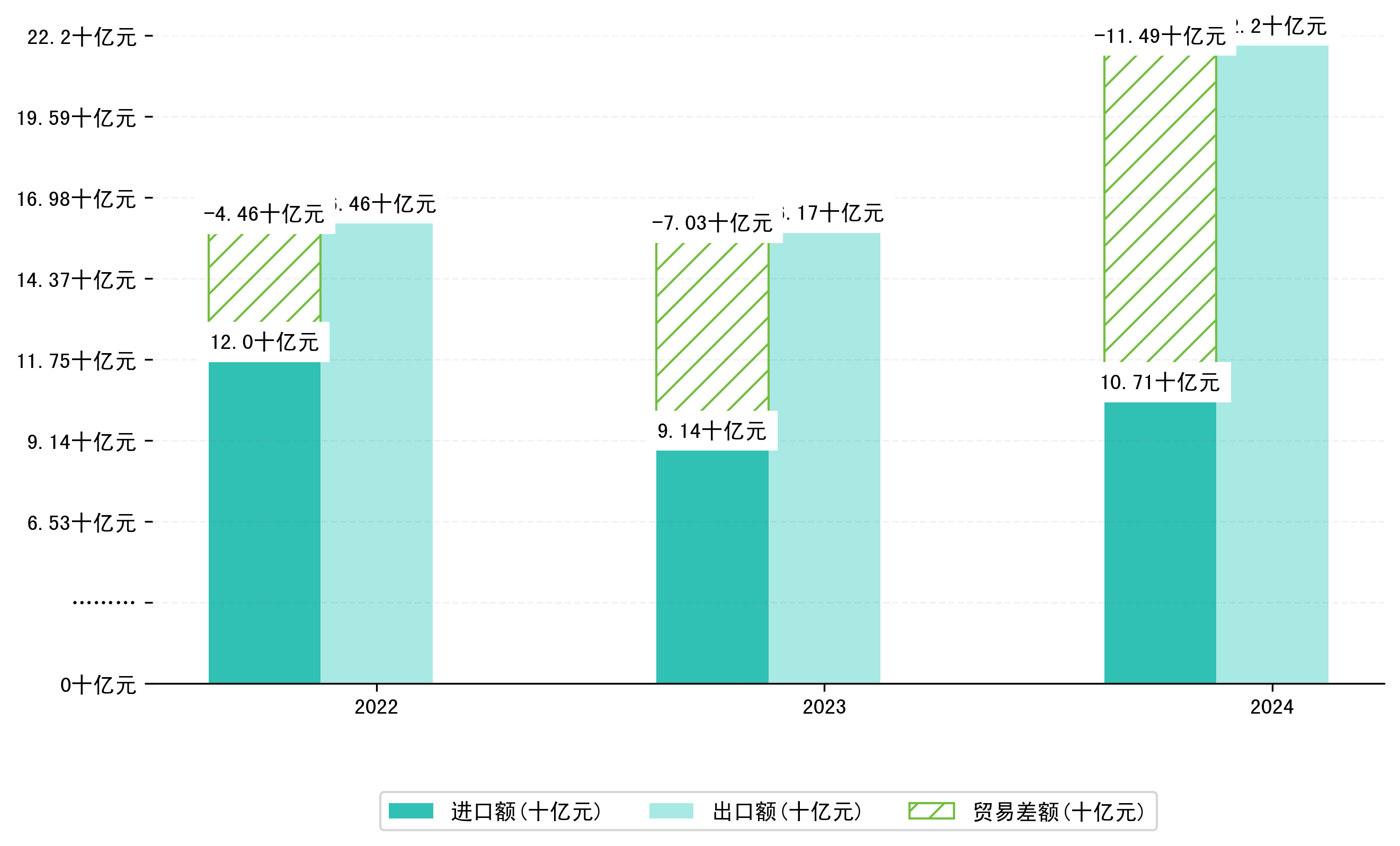 以人民币计,2024年1-1月武汉市贸易差额为114,9475,8957万元(贸易顺差),相比上年同期增加了44,6919,9342万元,同比增加63.61%。