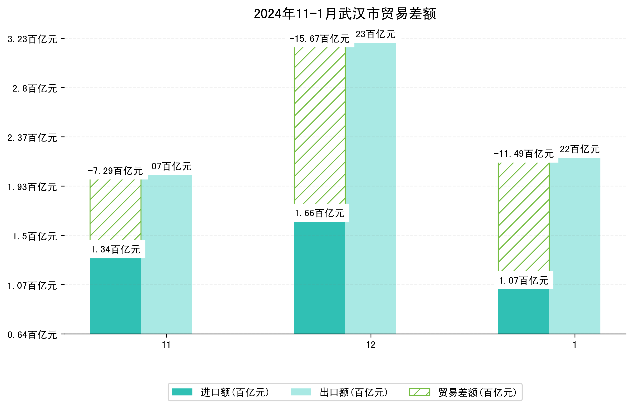 2024年1月武汉市进出口总额及进出口差额统计分析