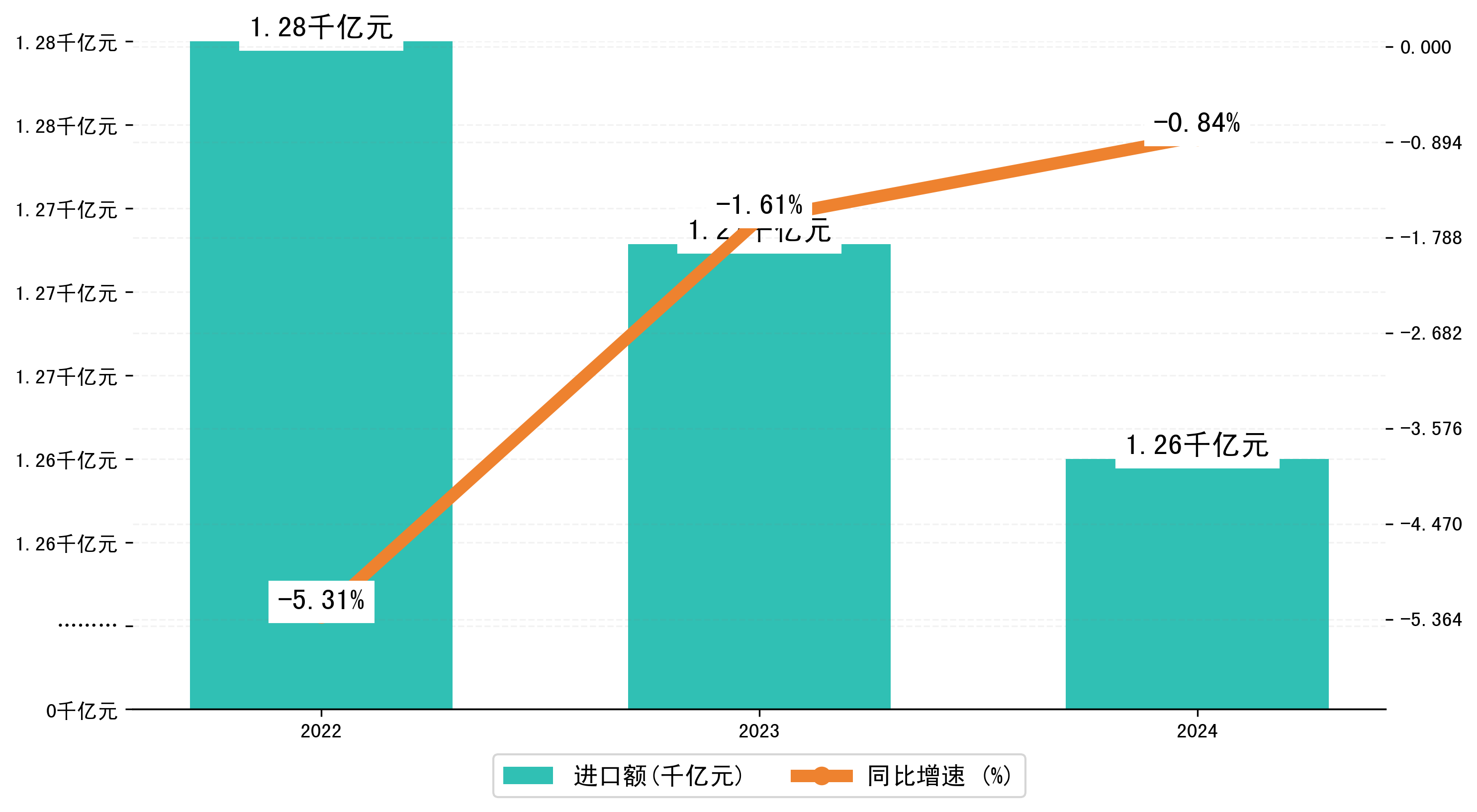 以人民币计,2024年1-11月武汉市进口额为1261,2337.8972万元,相比上年同期减少了10,6338.2457万元,同比减少了-1.00%。