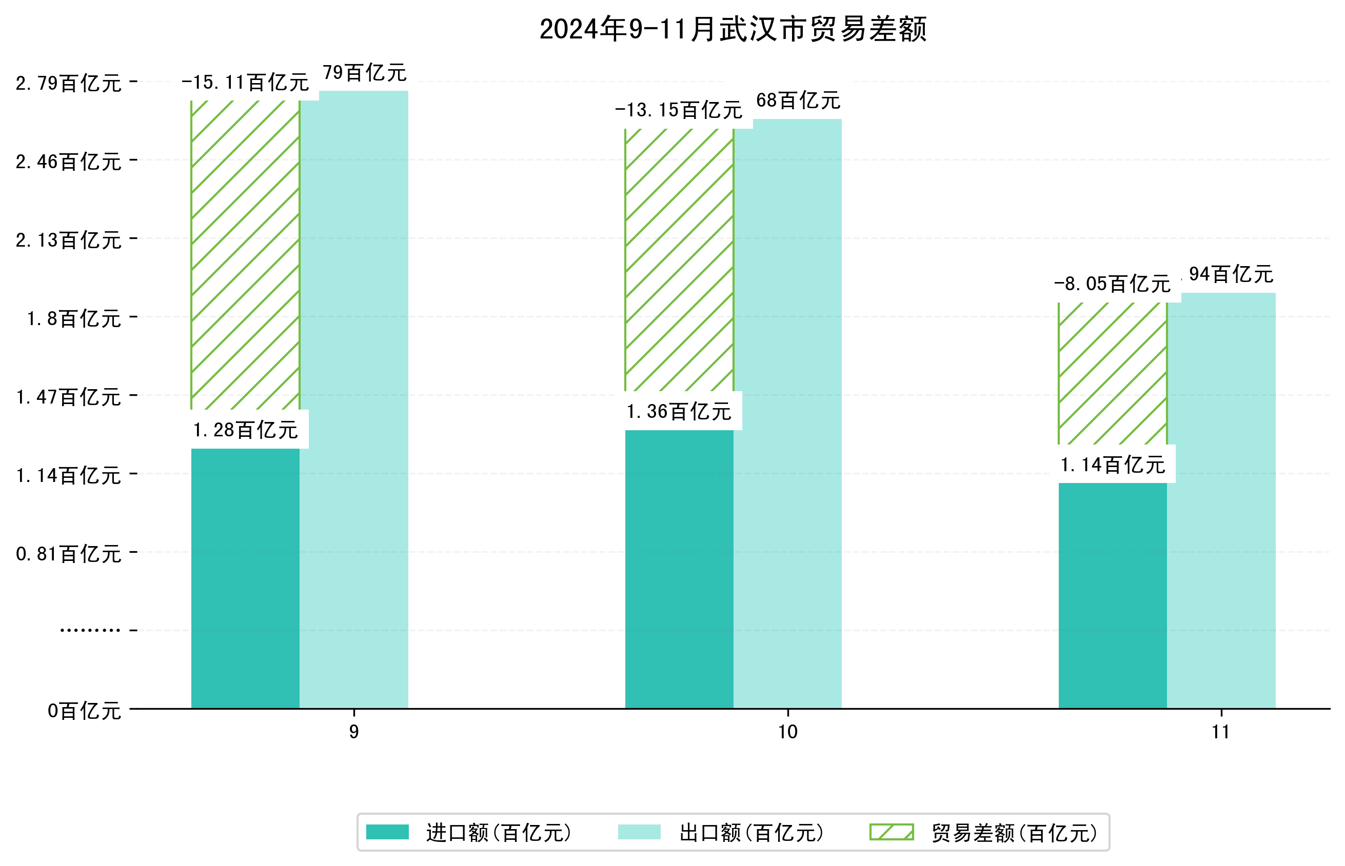 2024年11月武汉市进出口总额及进出口差额统计分析