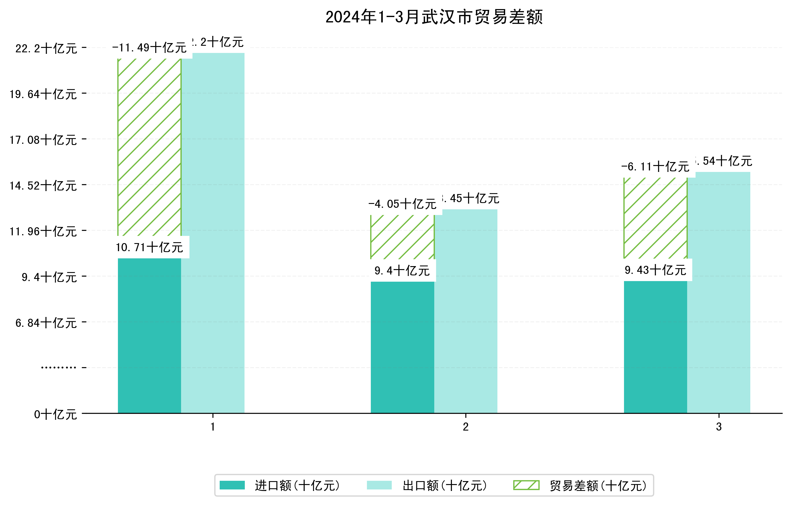 2024年3月武汉市进出口总额及进出口差额统计分析