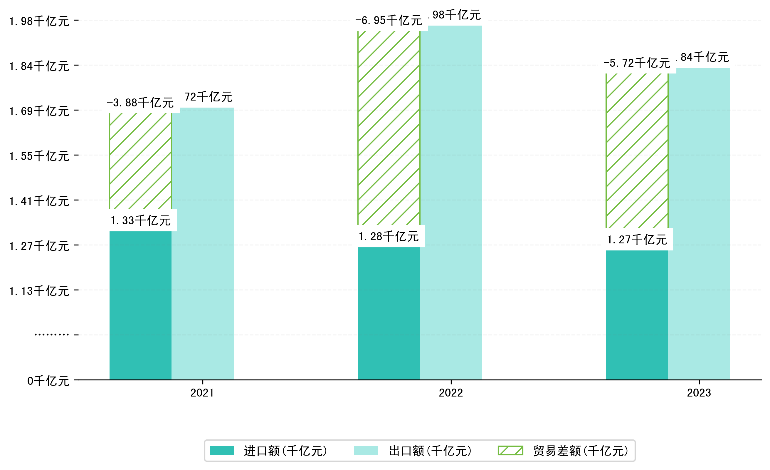 以人民币计,2023年1-11月武汉市贸易差额为572,3892,2349万元(贸易顺差),相比上年同期减少了122,7146,1904万元,同比减少-17.65%。