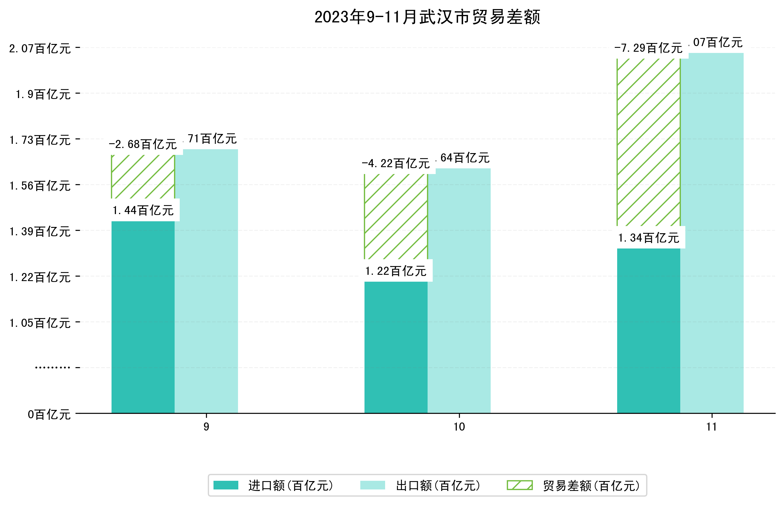 2023年11月武汉市进出口总额及进出口差额统计分析