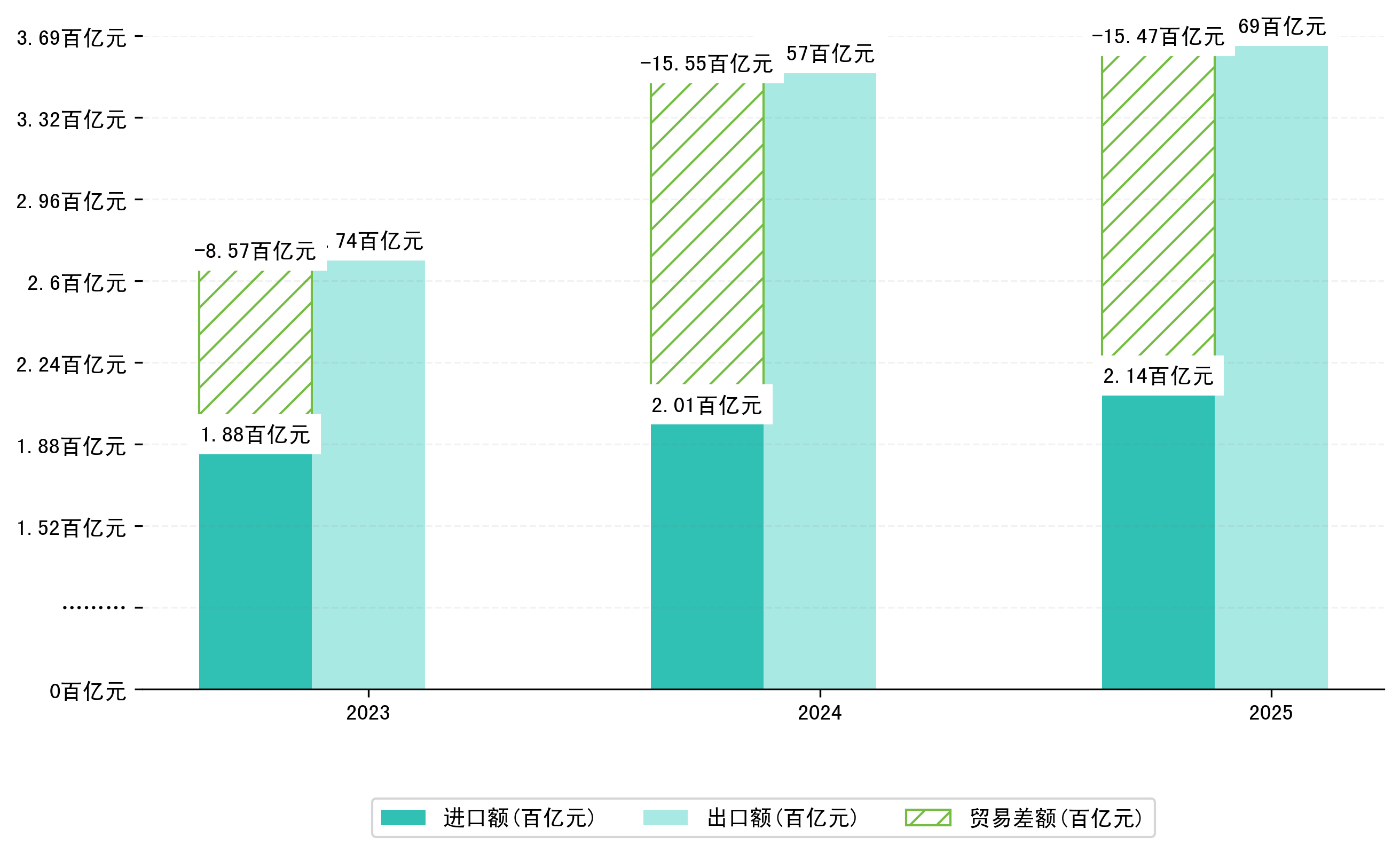 以人民币计,2025年2月武汉市贸易差额为88,9021,1904万元(贸易顺差),相比上月增加了23,1177,0272万元,即3,2280,6347万美元;相比上年同期增加了48,3872,5313万元,同比增加119.43%。