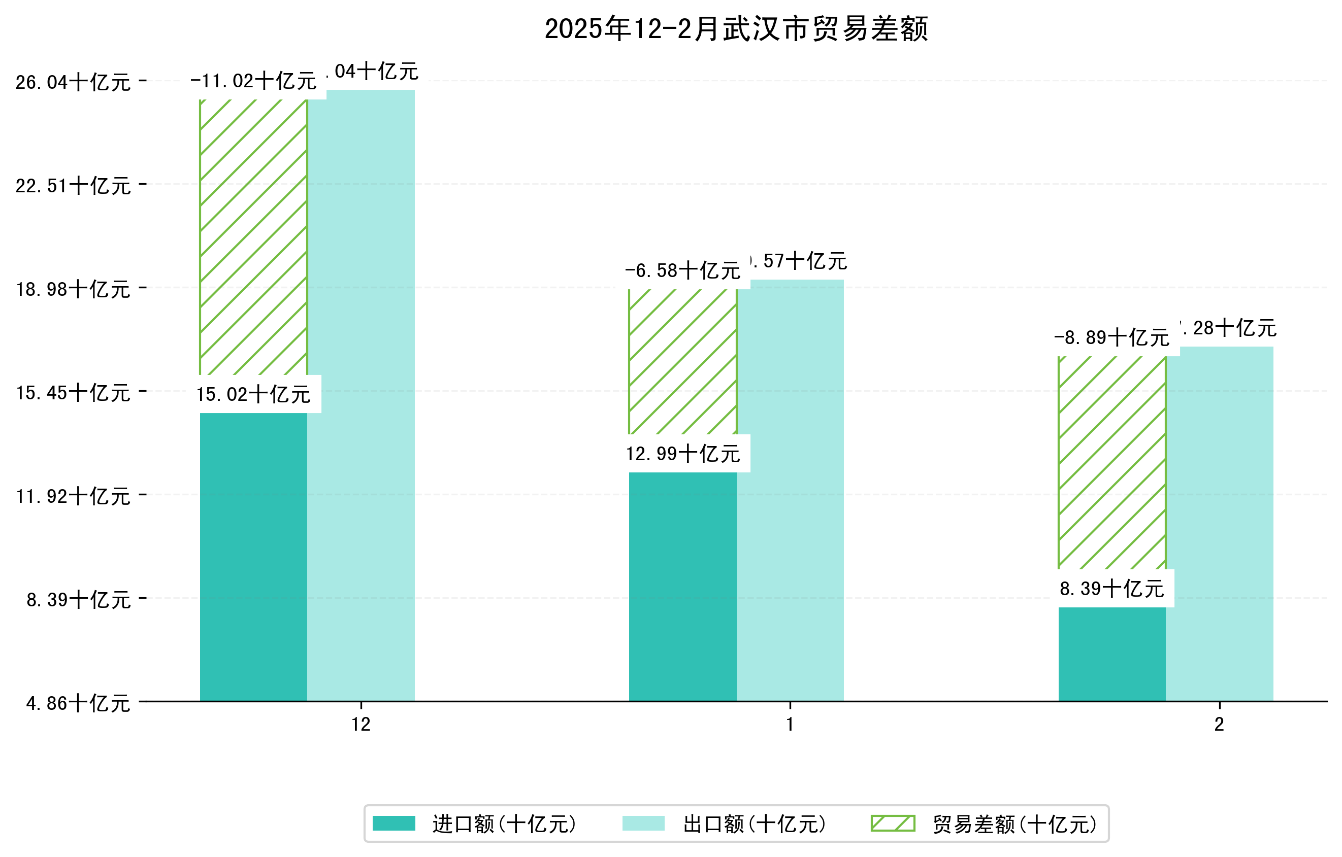 2025年2月武汉市进出口总额及进出口差额统计分析