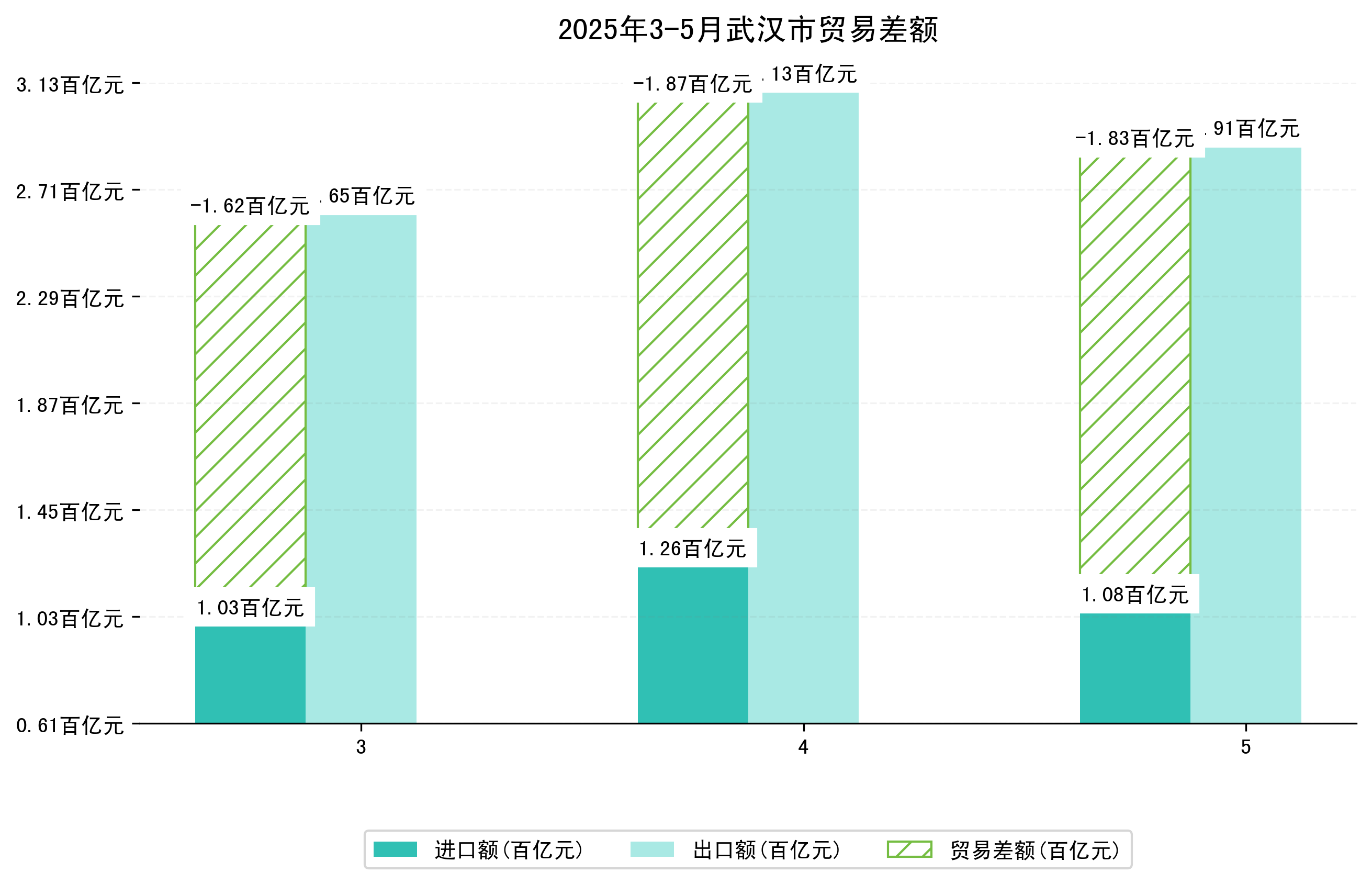 一、2025年5月武汉市单月出口总额及进出口差额统计分析