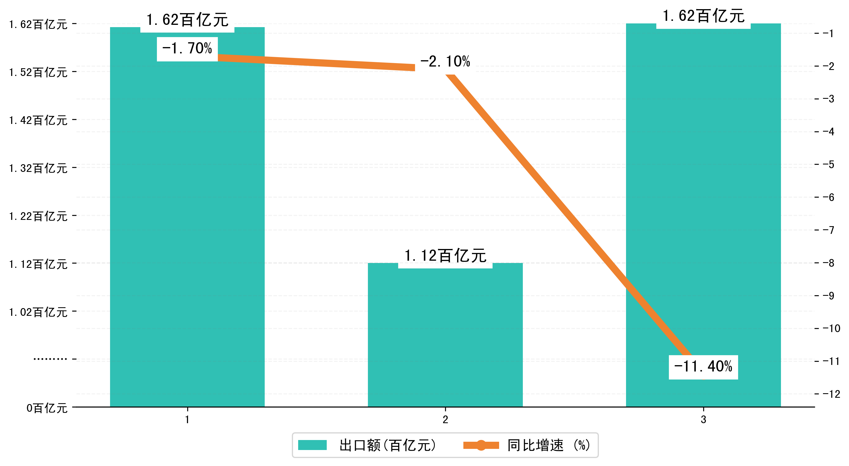 以人民币计,2023年3月武汉市出口额为162,4790.6912万元,相比上月增加了50,5742.0611万元;相比上年同期减少了47,5772.1929万元,同比减少了-11.40%。
