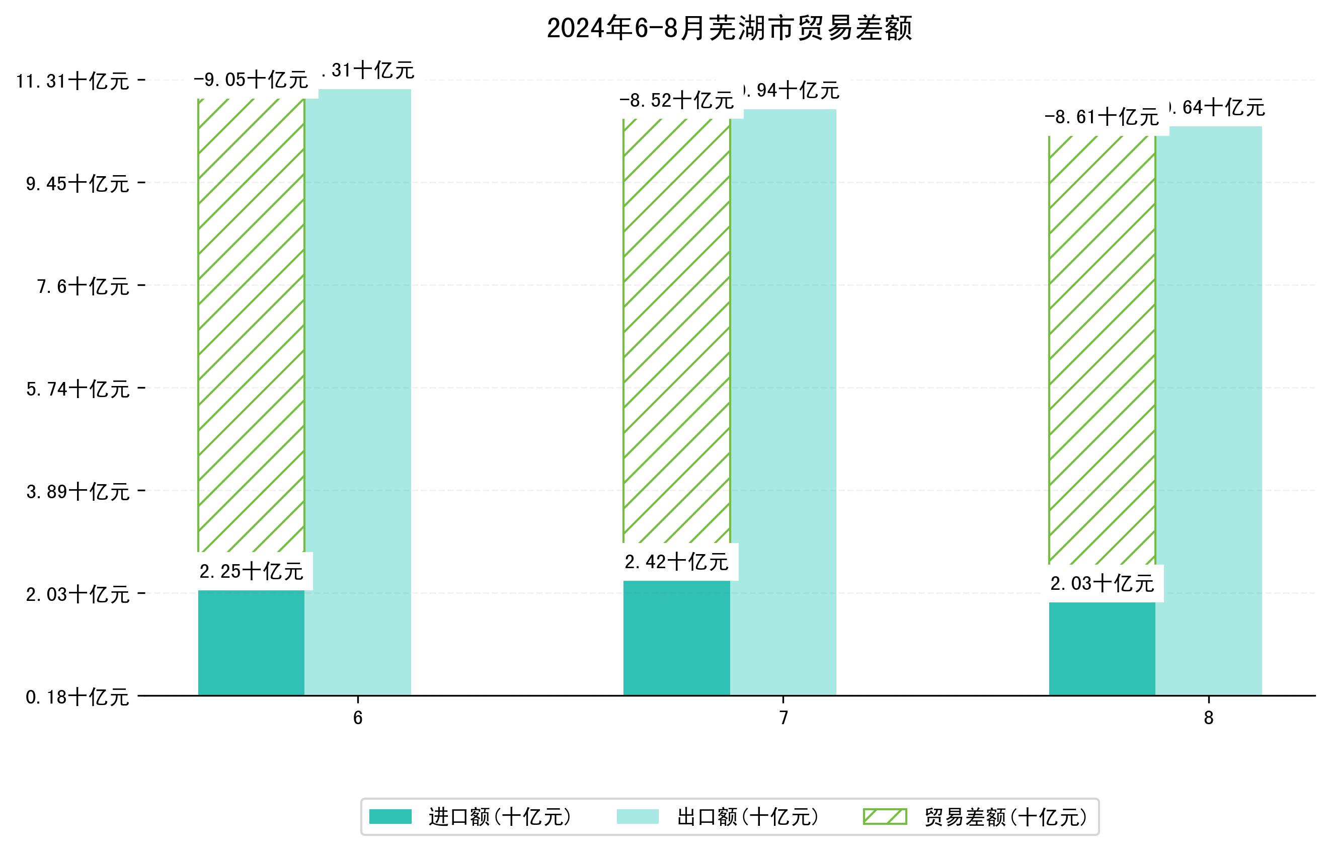 2024年8月芜湖市进出口总额及进出口差额统计分析