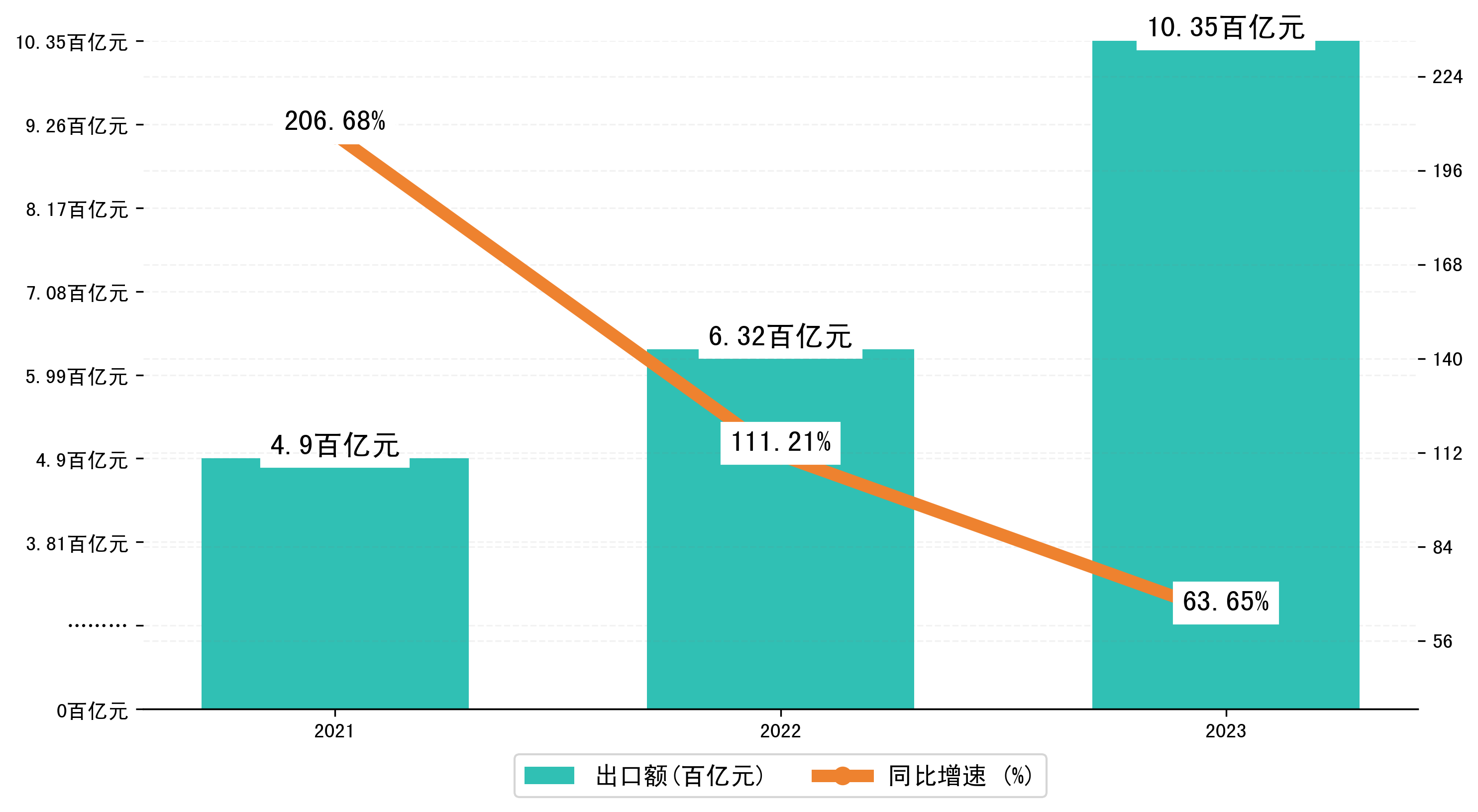 以美元计,2023年1-12月芜湖市出口额为146,8666.9705万美元,相比上年同期增加了52,1849.5278万美元,同比增加55.10%。