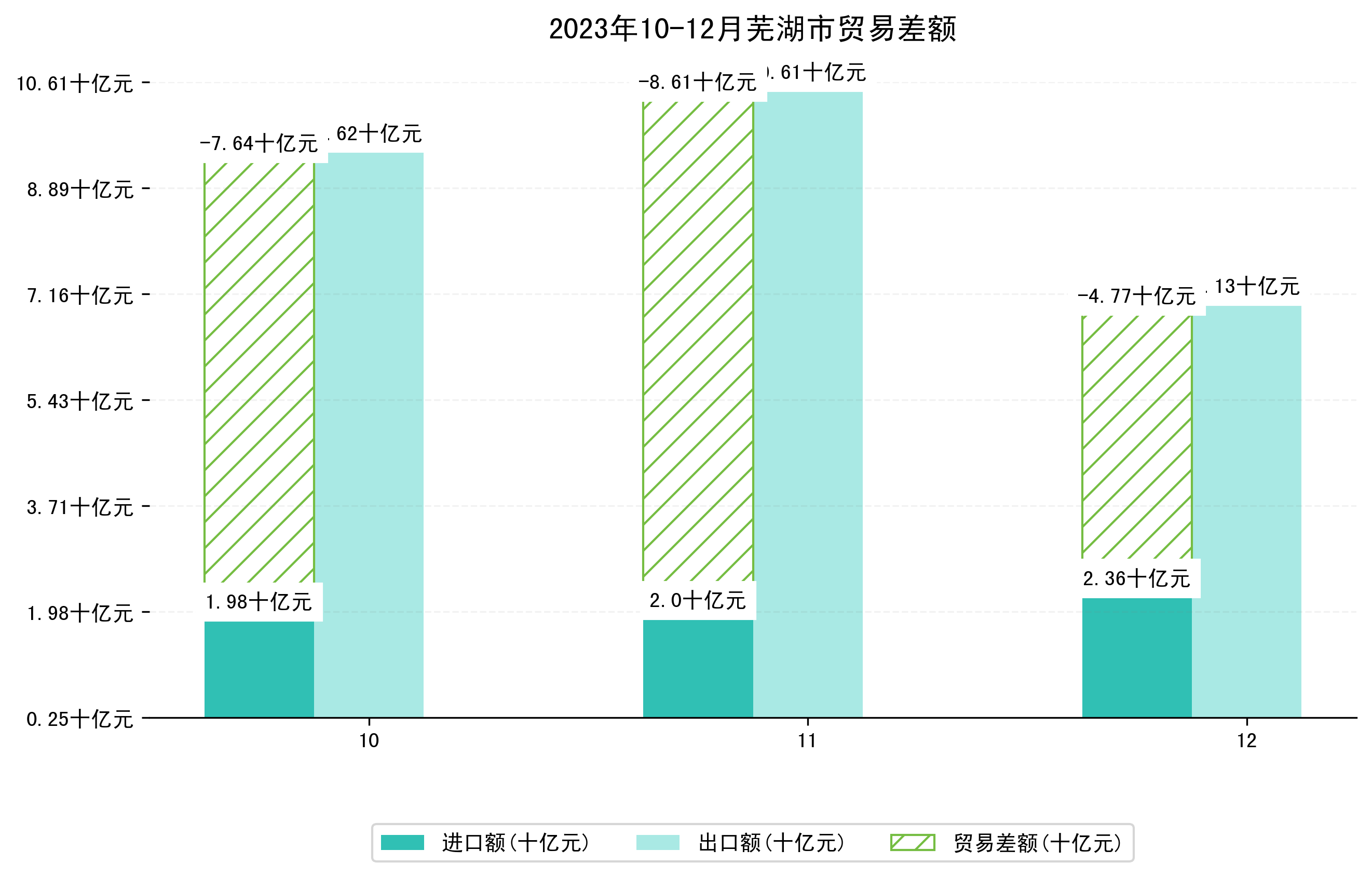 2023年12月芜湖市进出口总额及进出口差额统计分析