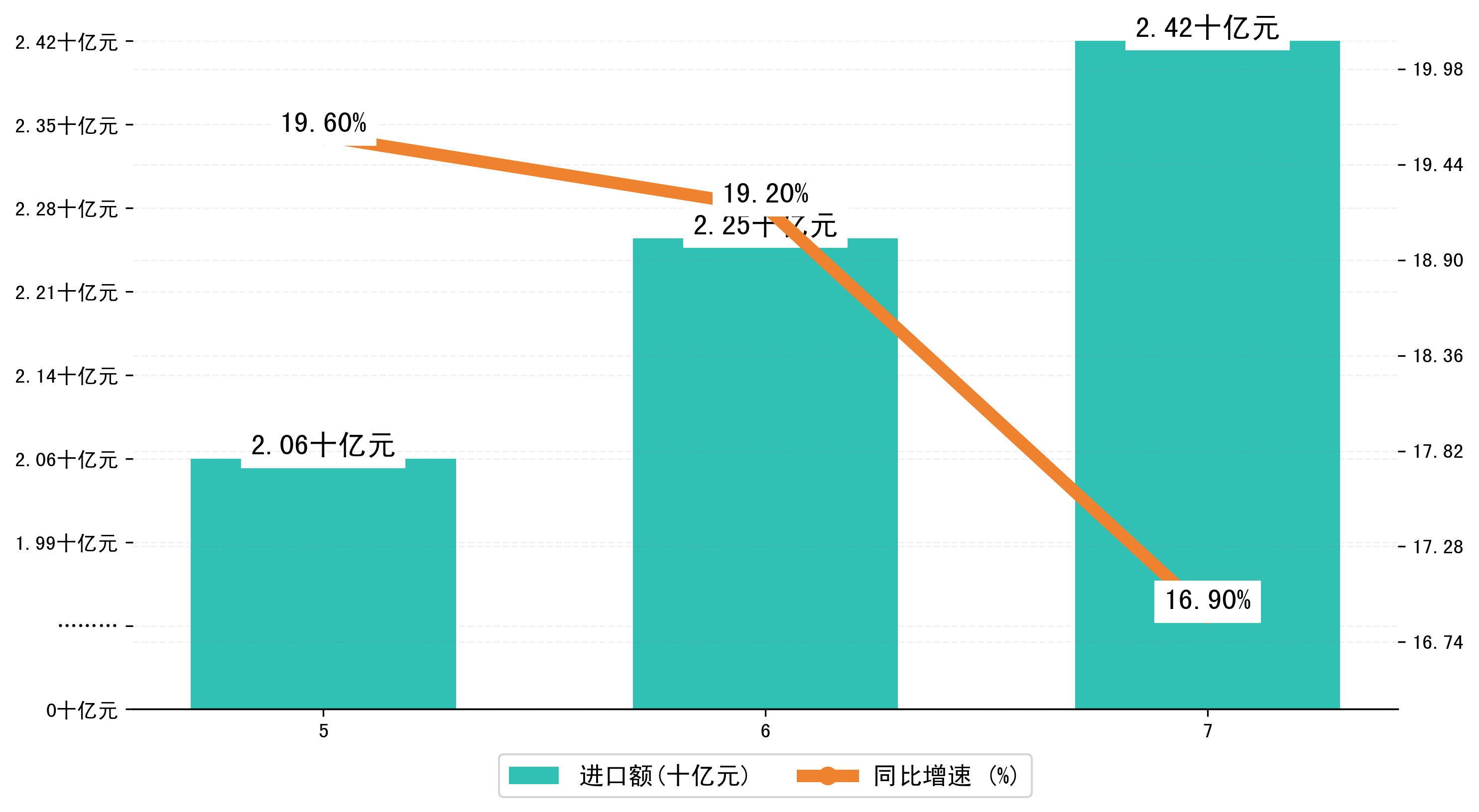 以人民币计,2024年7月芜湖市进口额为24,2314.122万元,相比上月增加了1,6938.6951万元;相比上年同期增加了1,4067.4921万元,同比增加了16.90%。