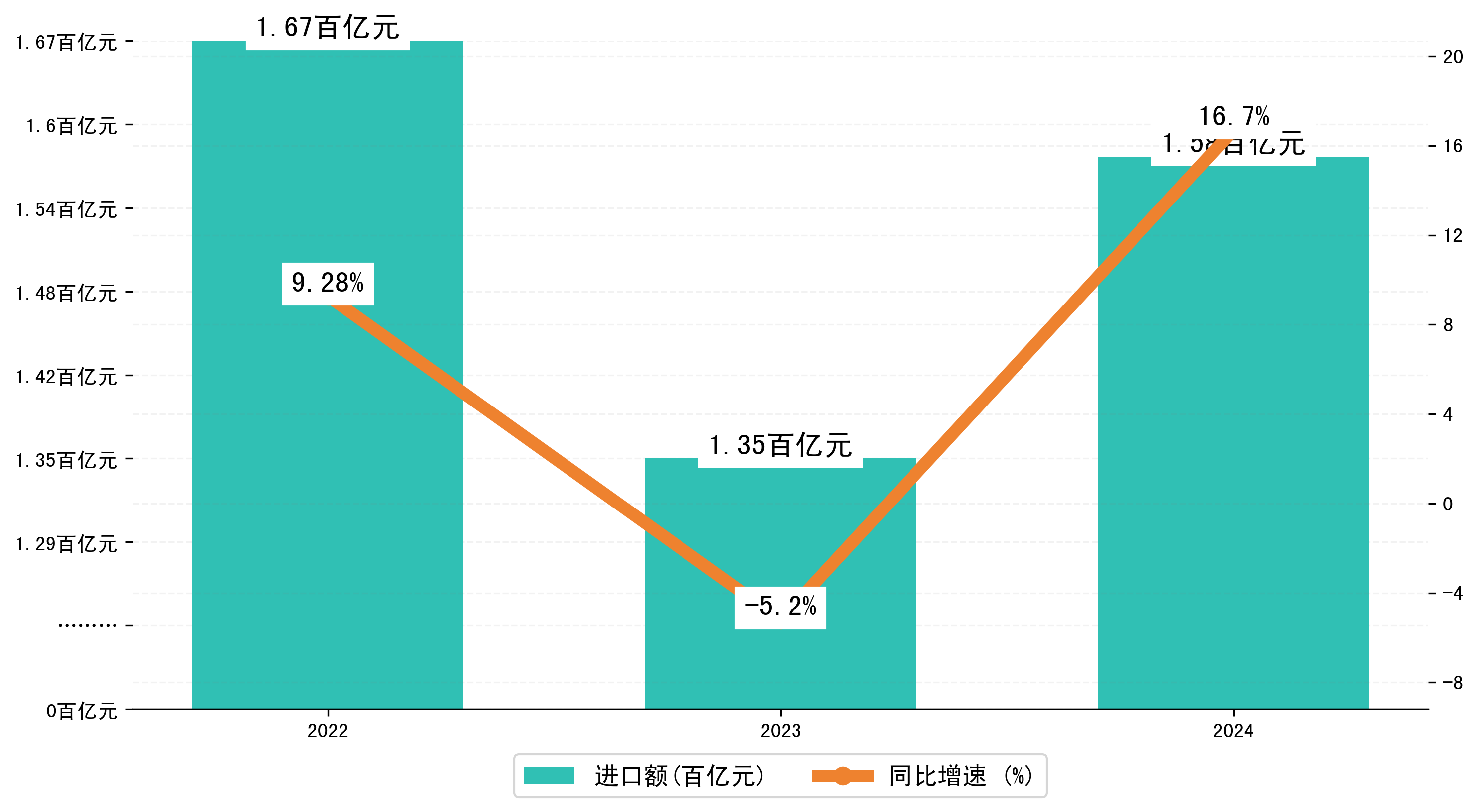 以人民币计,2024年1-7月芜湖市进口额为157,9333.2986万元,相比上年同期增加了22,6002.8253万元,同比增加了16.90%。
