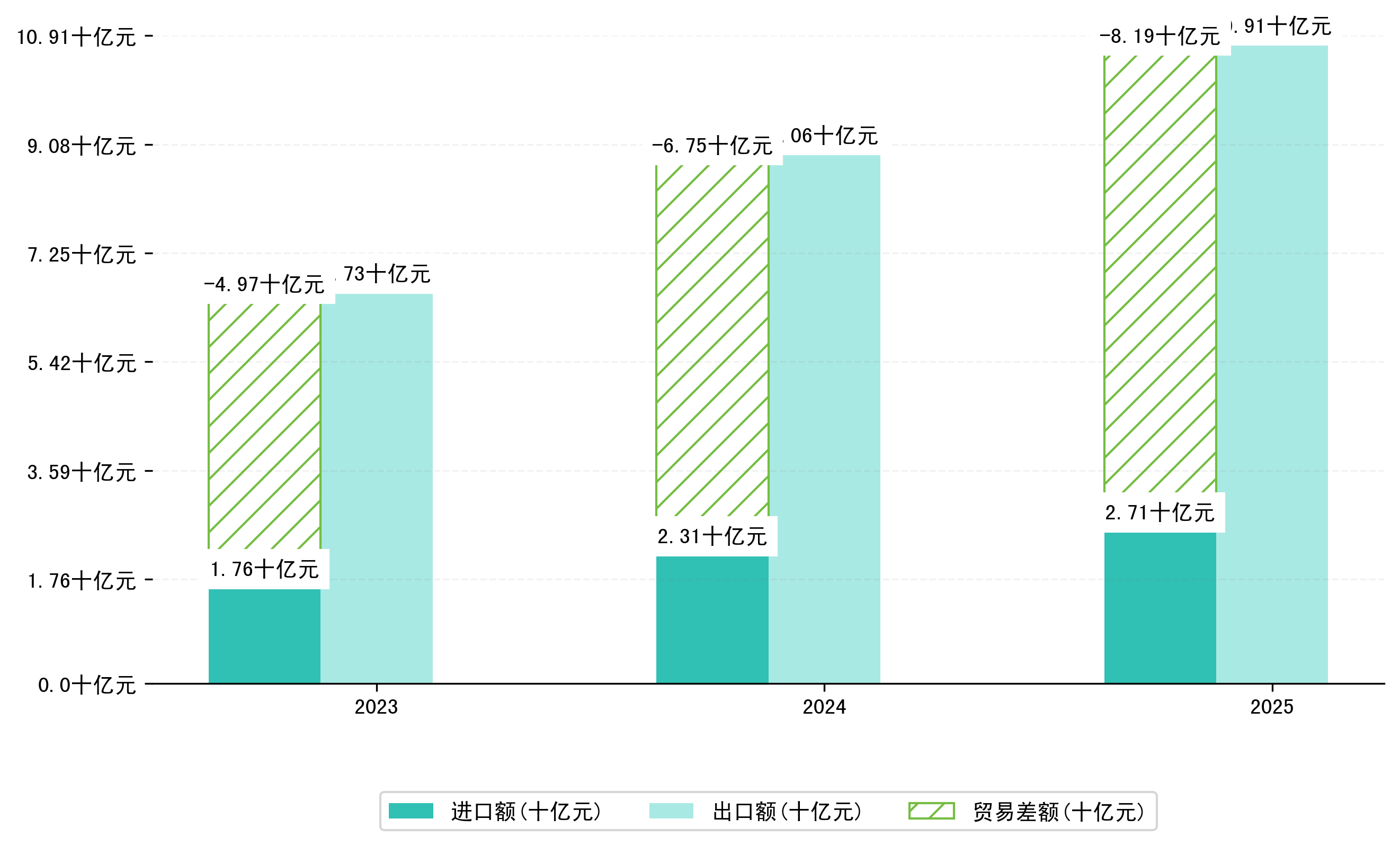 以人民币计,2025年1-1月芜湖市贸易差额为81,9410,4033万元(贸易顺差),相比上年同期增加了14,4529,9702万元,同比增加21.42%。