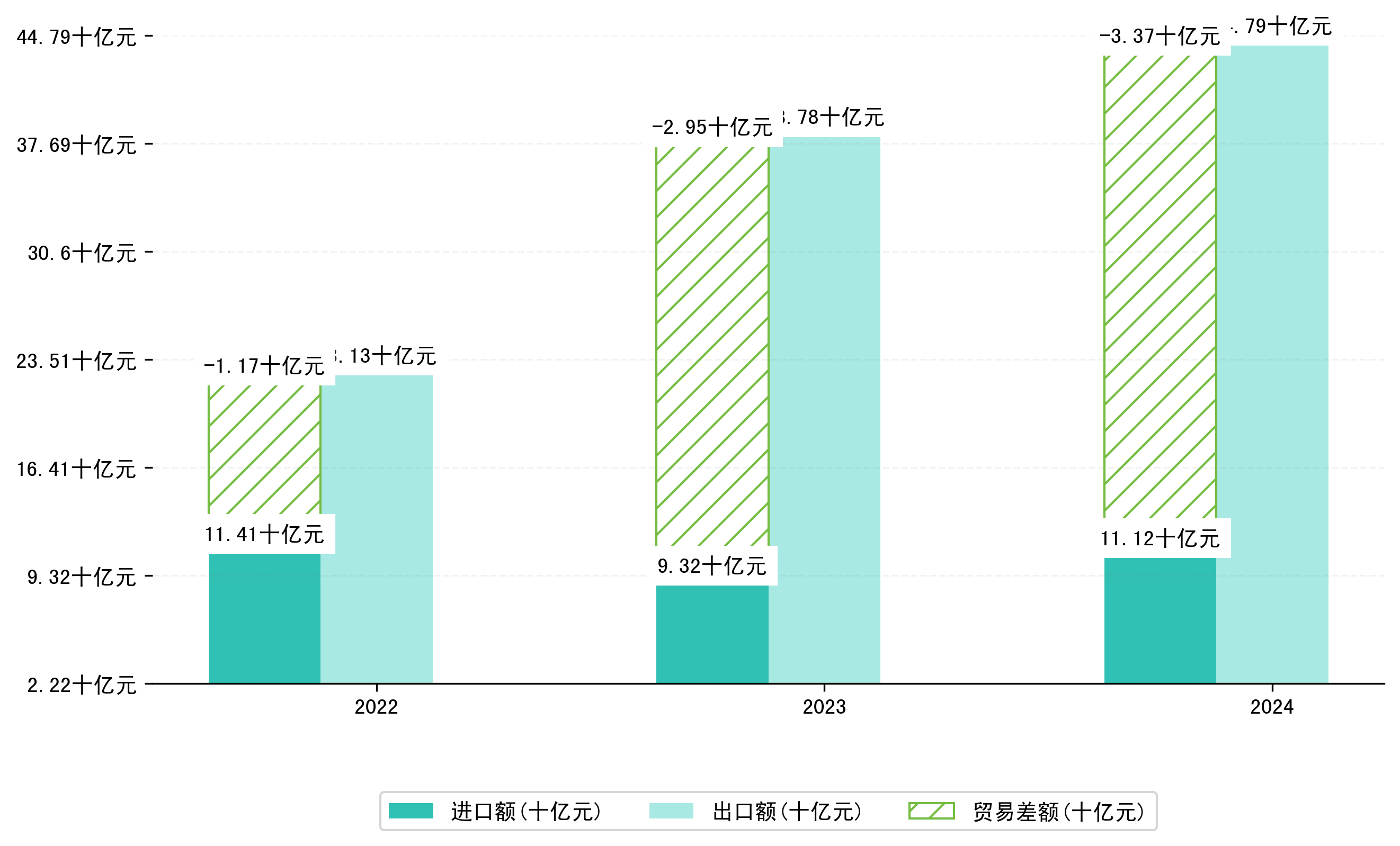以人民币计,2024年1-5月芜湖市贸易差额为336,7055,6747万元(贸易顺差),相比上年同期增加了42,0330,2554万元,同比增加14.26%。