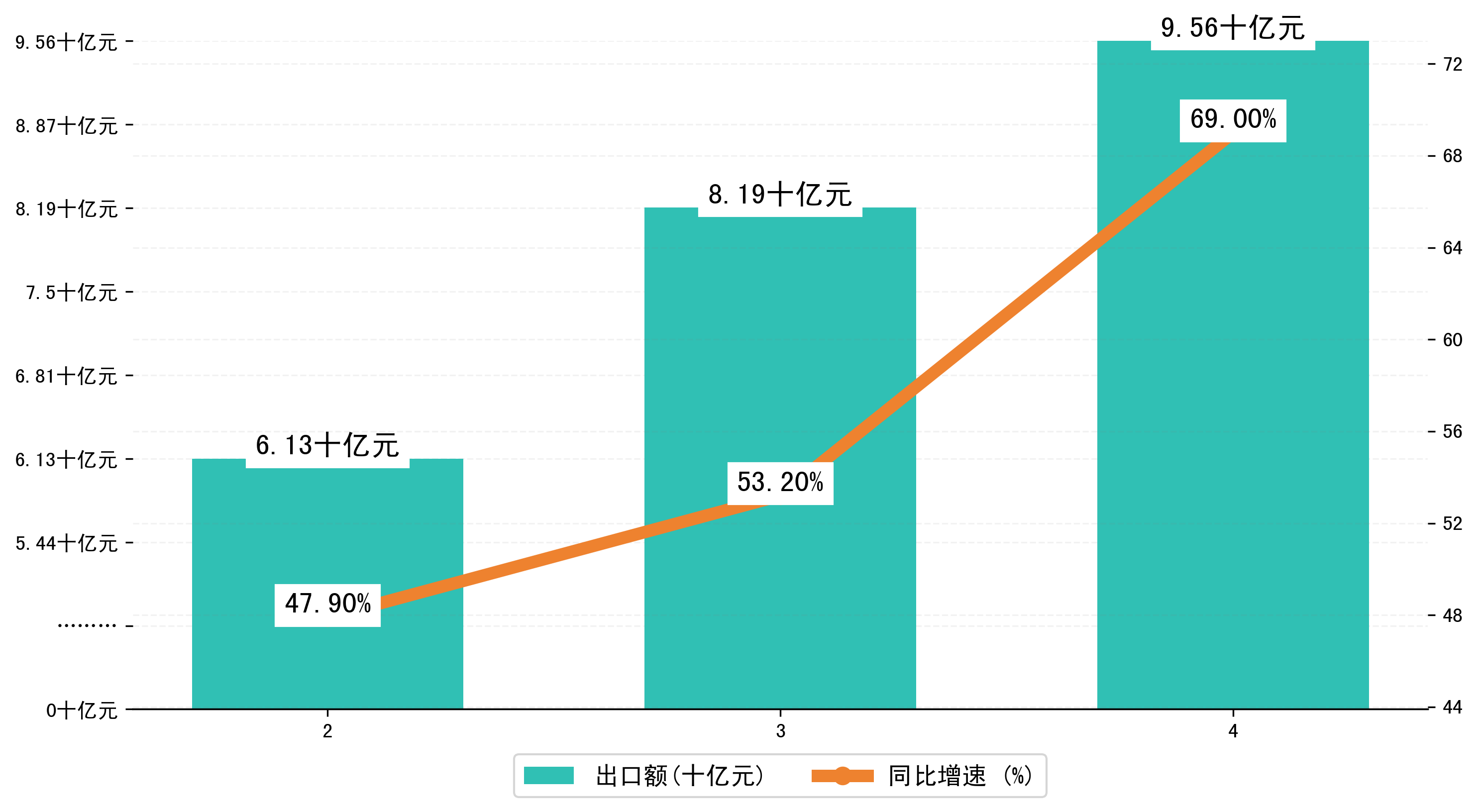 以人民币计,2023年1-4月芜湖市出口额为306,0636.479万元,相比上年同期增加了124,8829.107万元,同比增加了69.00%。