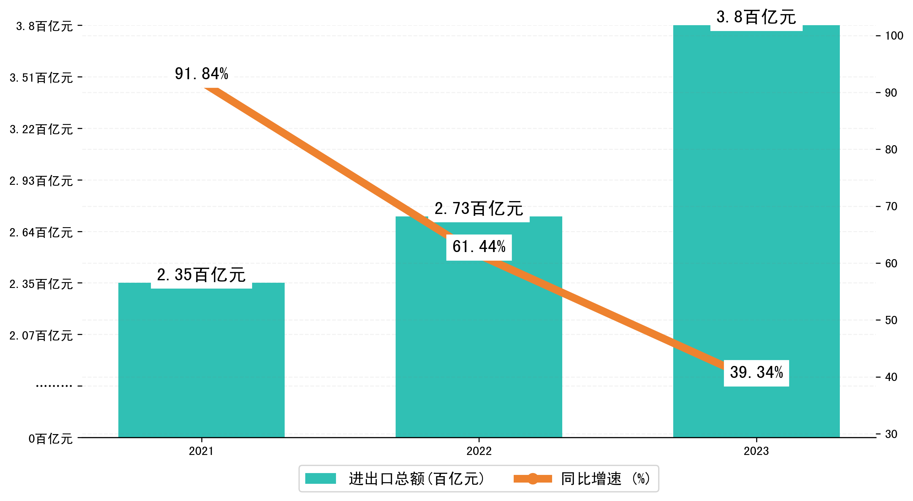 以美元计,2023年1-4月芜湖市贸易差额为33,6952,0092万美元(贸易顺差),相比上年同期增加了19,6253,1471万美元,同比增加139.48%。