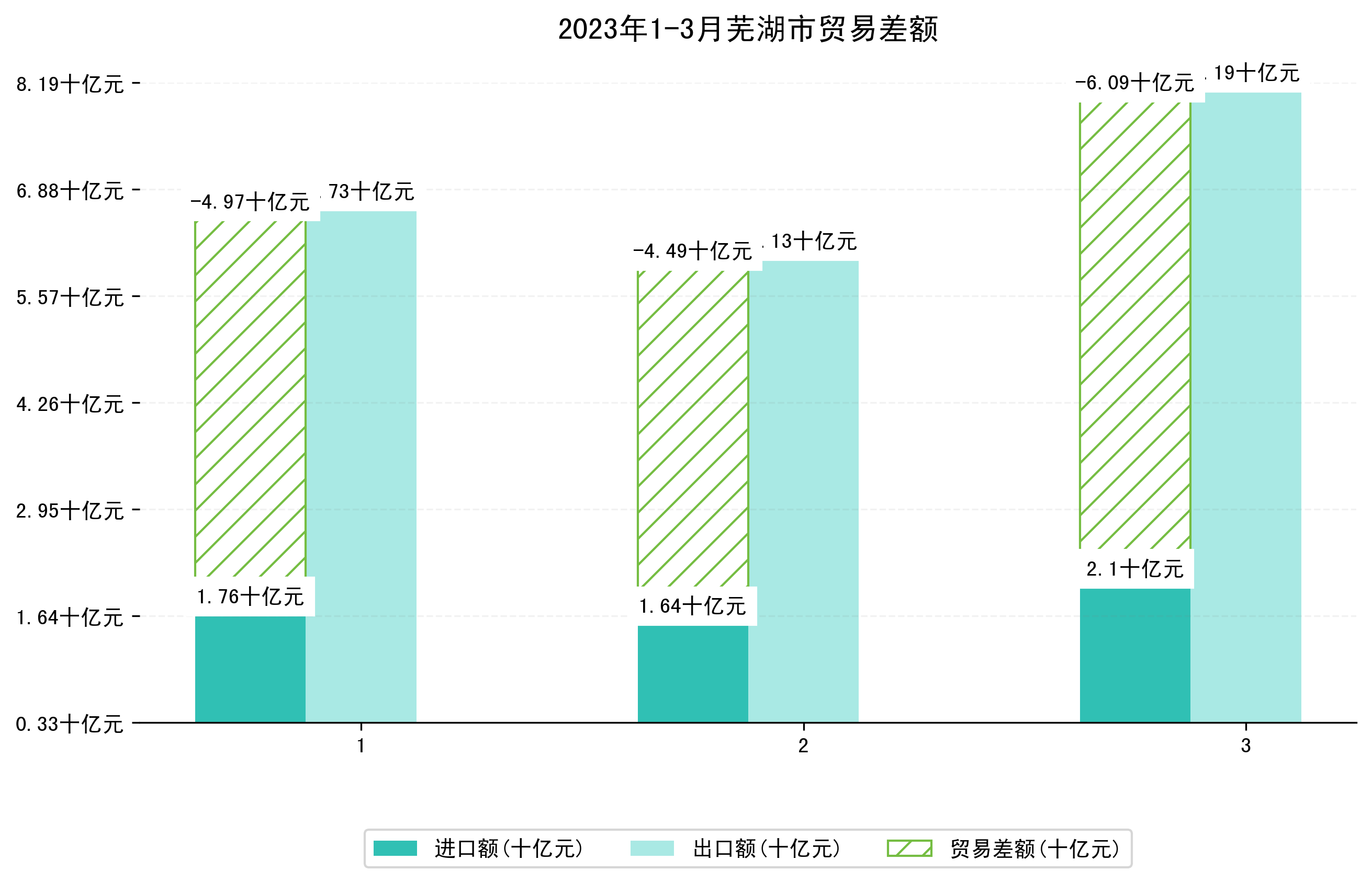 (图一:2023年1-3月芜湖市进出口总额)