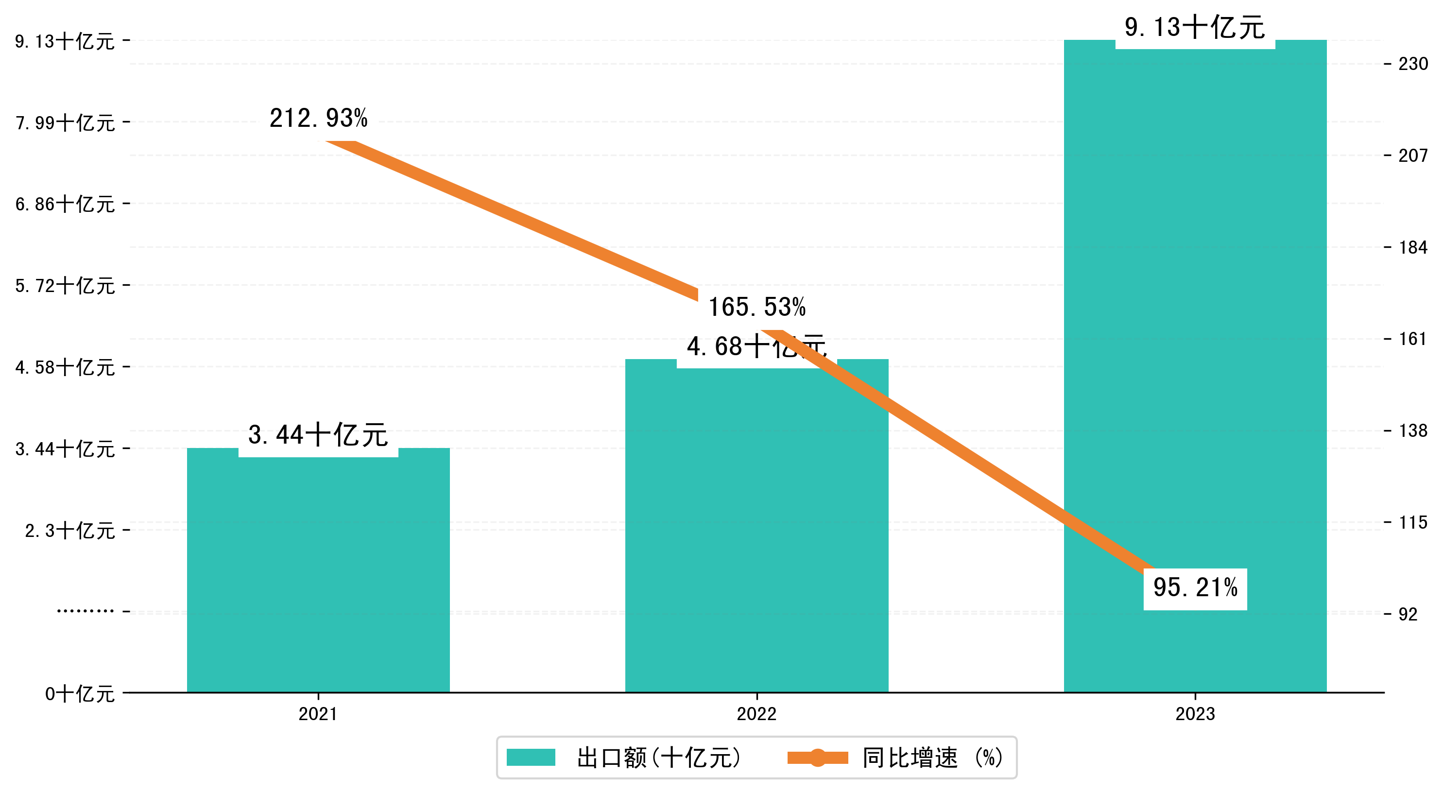 以人民币计,2023年1-2月乌鲁木齐市出口额为91,3336.8787万元,相比上年同期增加了44,5458.5977万元,同比增加了95.20%。