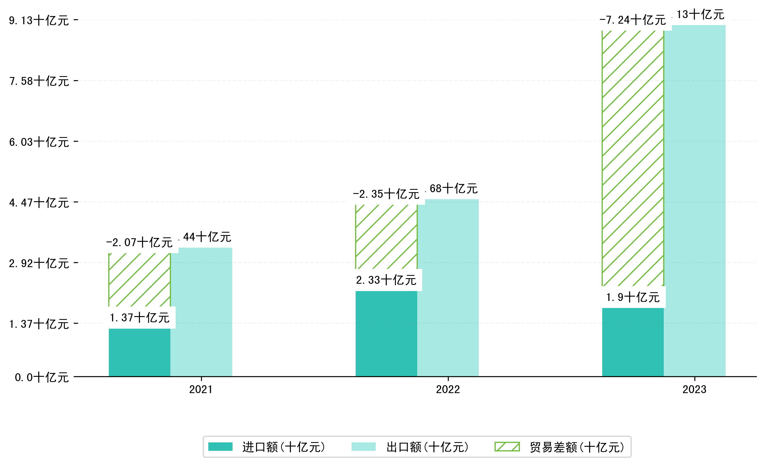以人民币计,2023年1-2月乌鲁木齐市贸易差额为72,3836,4048万元(贸易顺差),相比上年同期增加了48,9064,9371万元,同比增加208.32%。