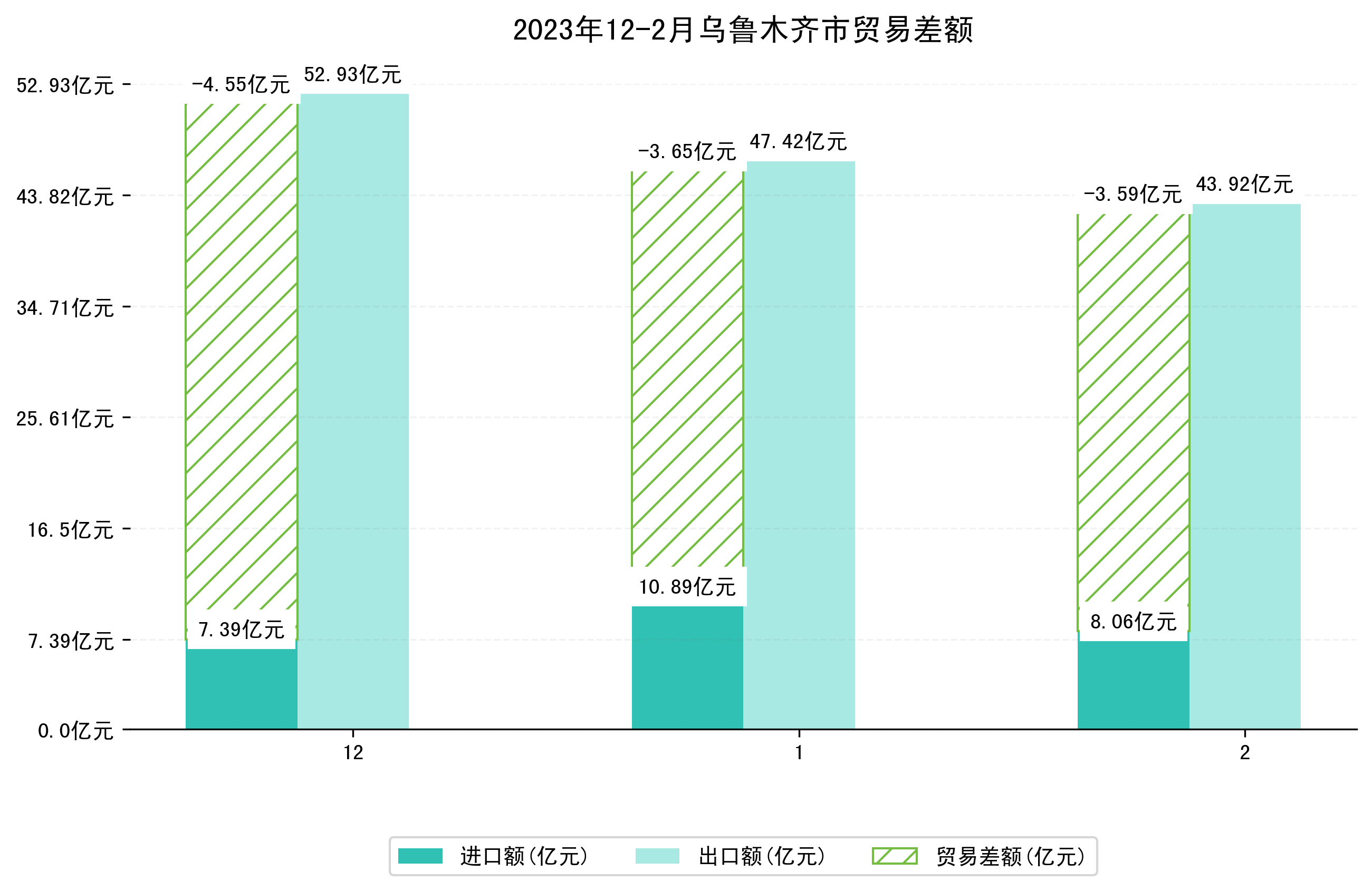 (图四:2023年12-2月乌鲁木齐市贸易差额)