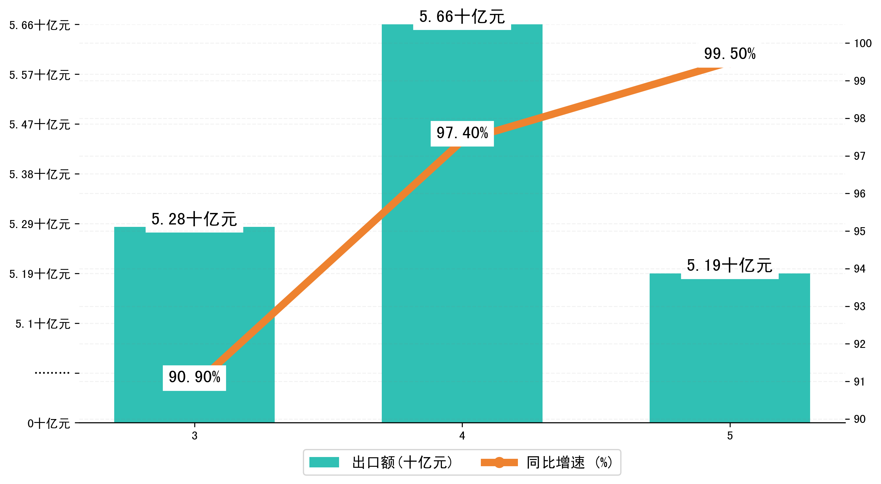 (图二:2023年3-5月乌鲁木齐市出口额)