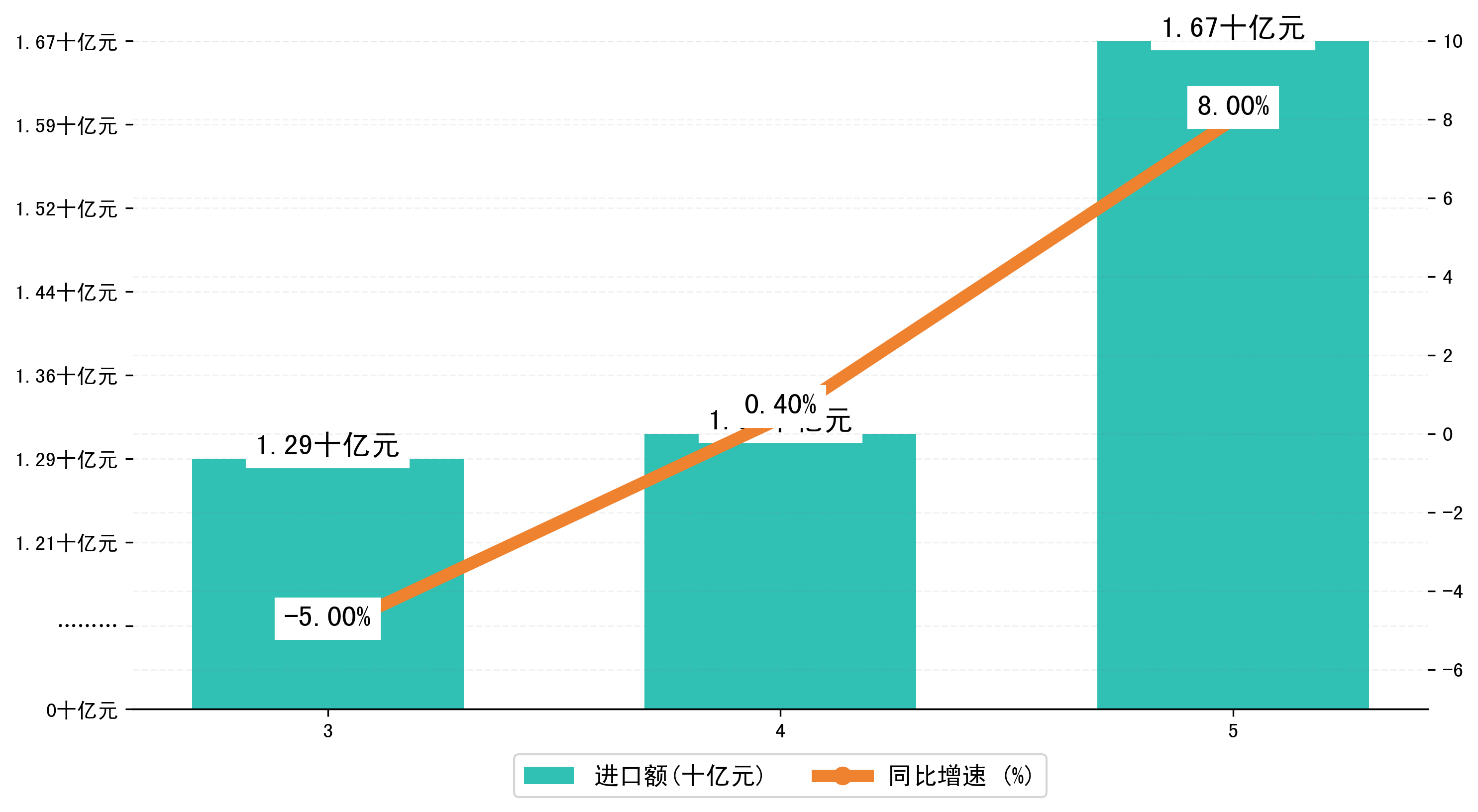 (图三:2023年3-5月乌鲁木齐市进口额)