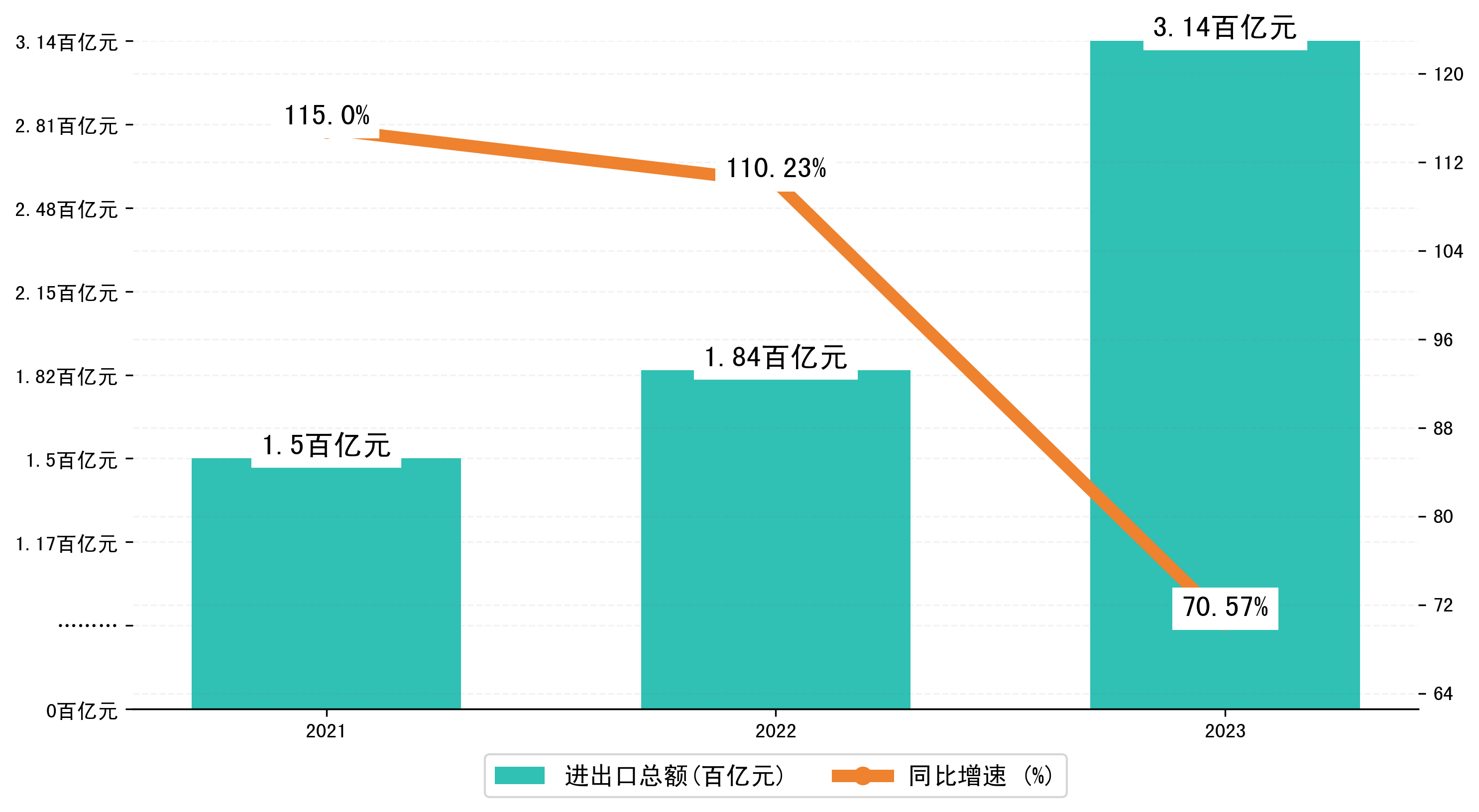 以人民币计,2023年1-5月乌鲁木齐市进出口总额为314,3048.9051万元,相比上年同期增加了130,0387.1215万元,同比增加了71.10%。