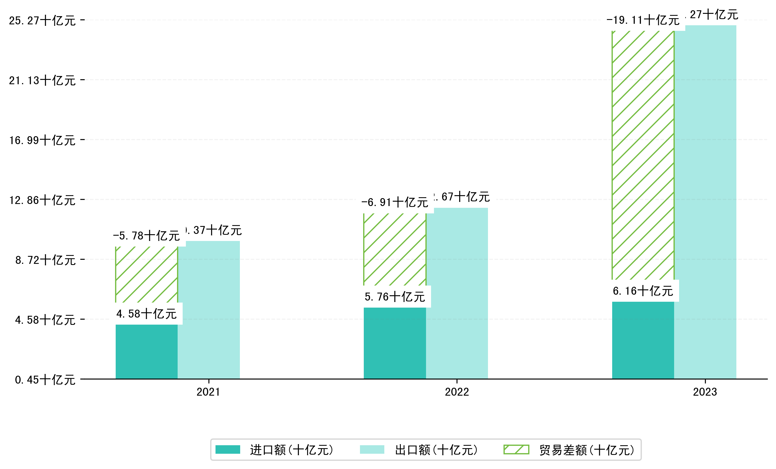 以美元计,2023年5月乌鲁木齐市贸易差额为5,1242,3207万美元(贸易顺差),相比上月减少了1,2216,4976万美元;相比上年同期增加了3,1545,9342万美元,同比增加160.16%。