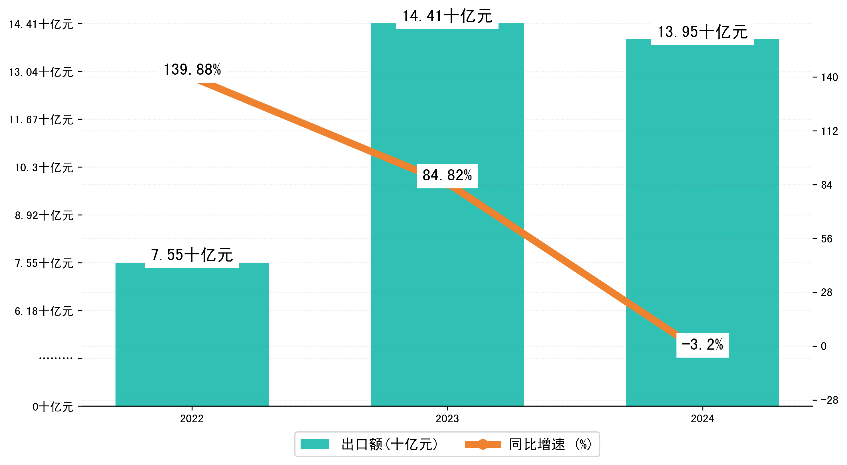 以人民币计,2024年1-3月乌鲁木齐市出口额为139,5260.3219万元,相比上年同期减少了4,6181.5981万元,同比增加了0.40%。